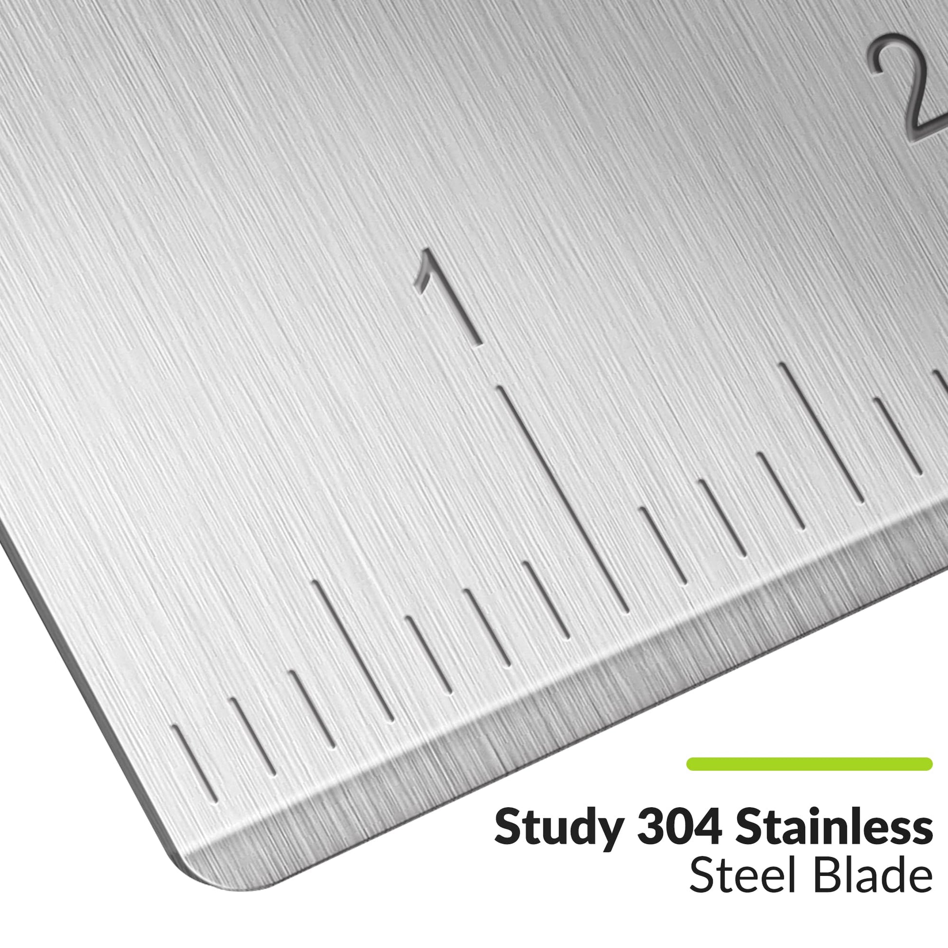 • Measurement Marks - Create perfectly even portions with help from the 1- to 6-inch measurement marks (in 1/4 inch increments) that run along the tool's blade edge