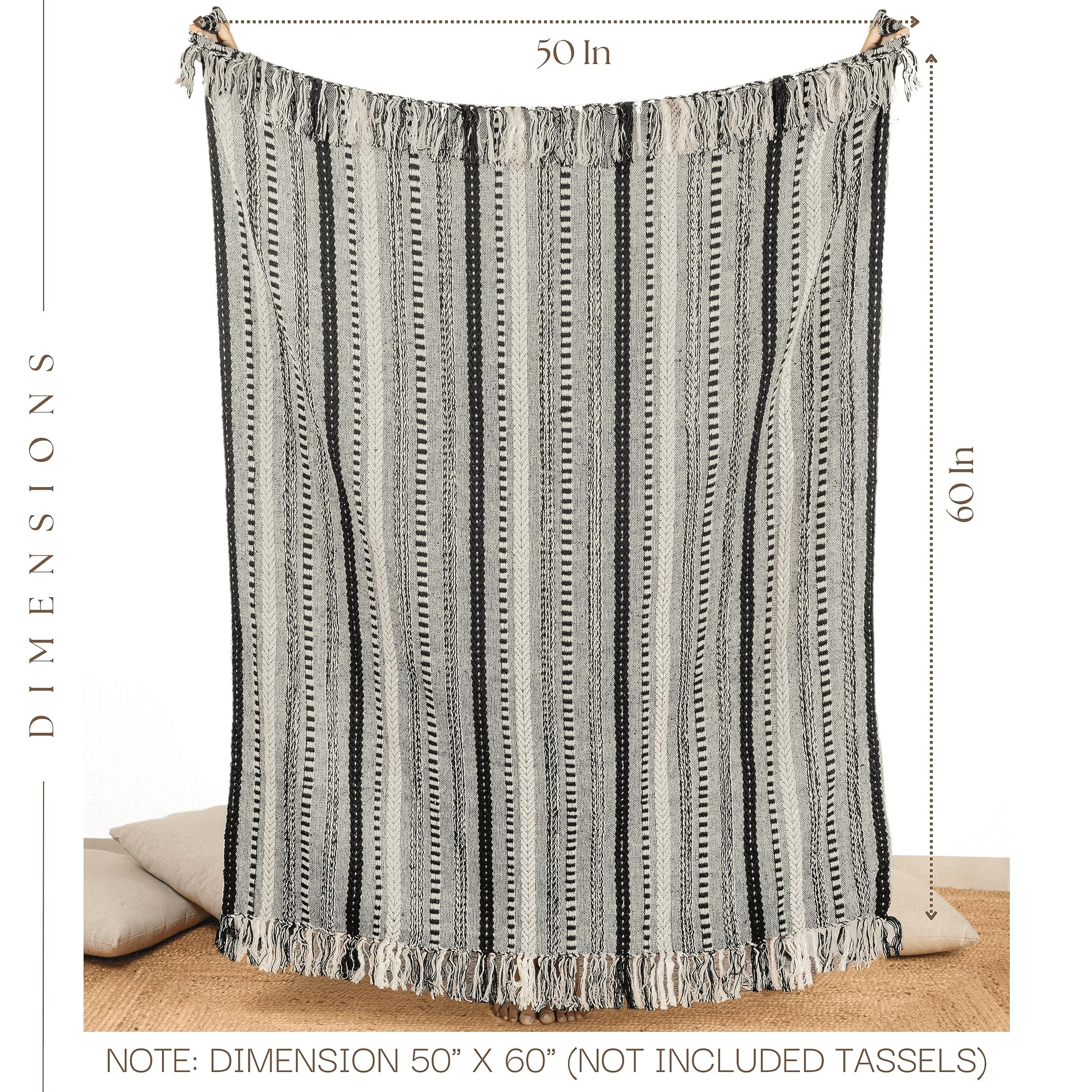 RAJRANG Boho Throw Blanket with Braided Striped - 50x60 Inches Luxury Woven Throws for Outdoor Indoor Sofa Chair Couch Home Decor - Black