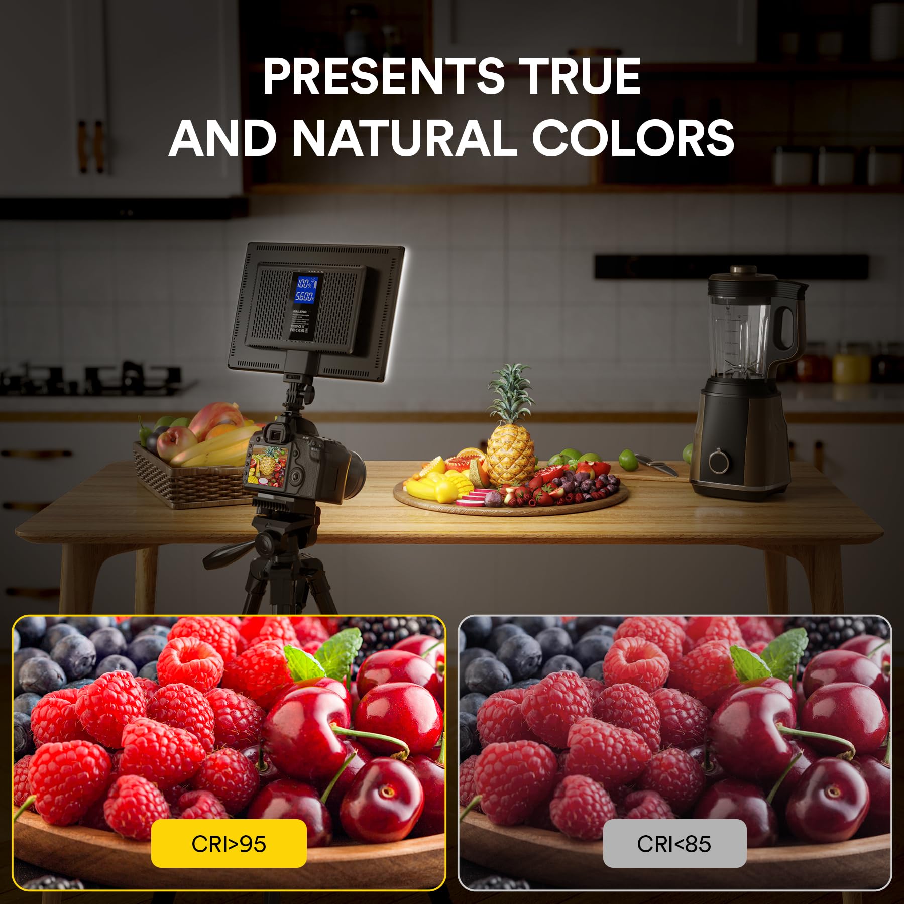 • 【CRI>95 3200K-5600K】RALENO PLV-S192 panel light comes with 192 beads, color temperature from 3200K to 5600K to meet the light needs in different environments; CRI>95, ensuring accurate color reproduction and display the true beauty of your subjects
