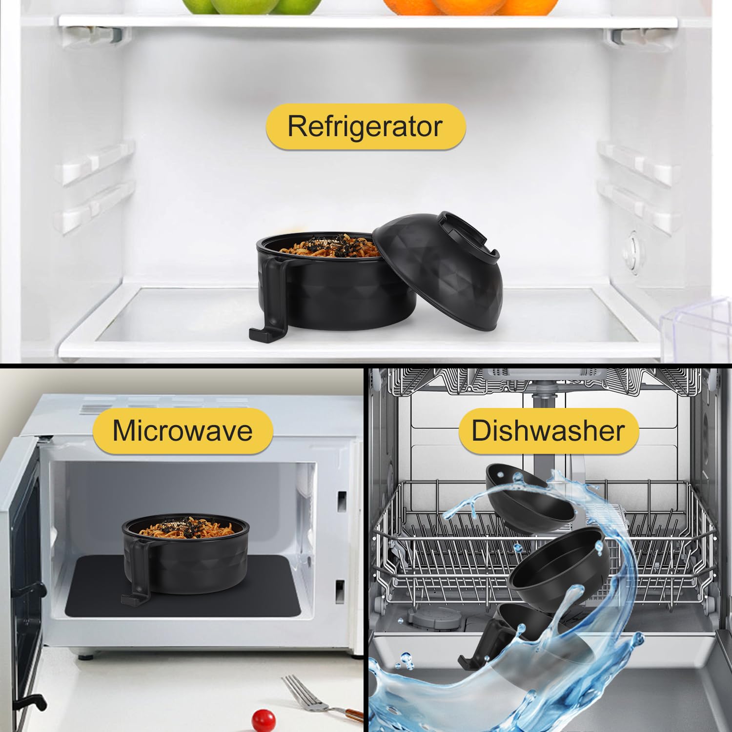 • Easy to Use: Place the draining bowl inside the large bowl, add noodles, pour boiling water, and cover with the small bowl (which also acts as the lid). Microwave, strain, and enjoy perfectly cooked ramen in minutes