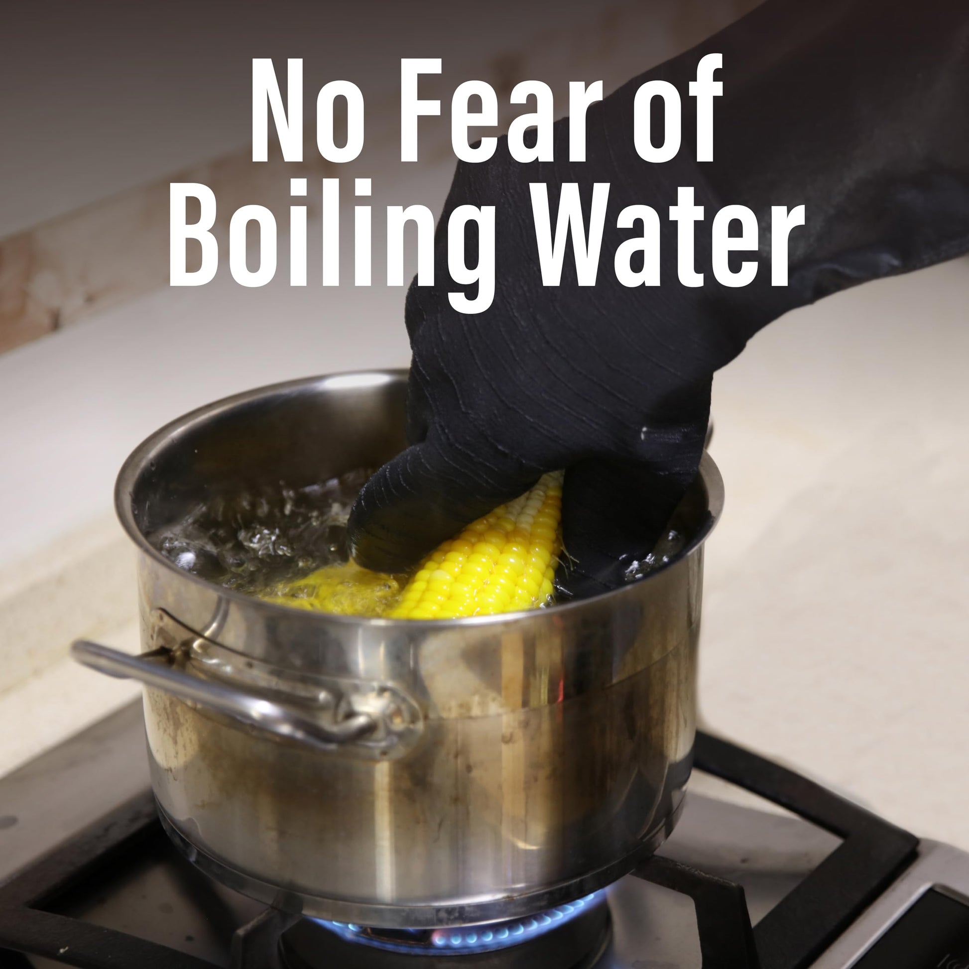 • Smooth Hot Liquid & STEAM Management: Experience effortless food extraction from hot boiling water or steam with these gloves, ensuring secure and easy handling. The waterproof neoprene coating offers a reliable grip, enhancing convenience in various cooking tasks, like dipping a chicken in hot water (Please conduct a cold water test to check for potential defective gloves).