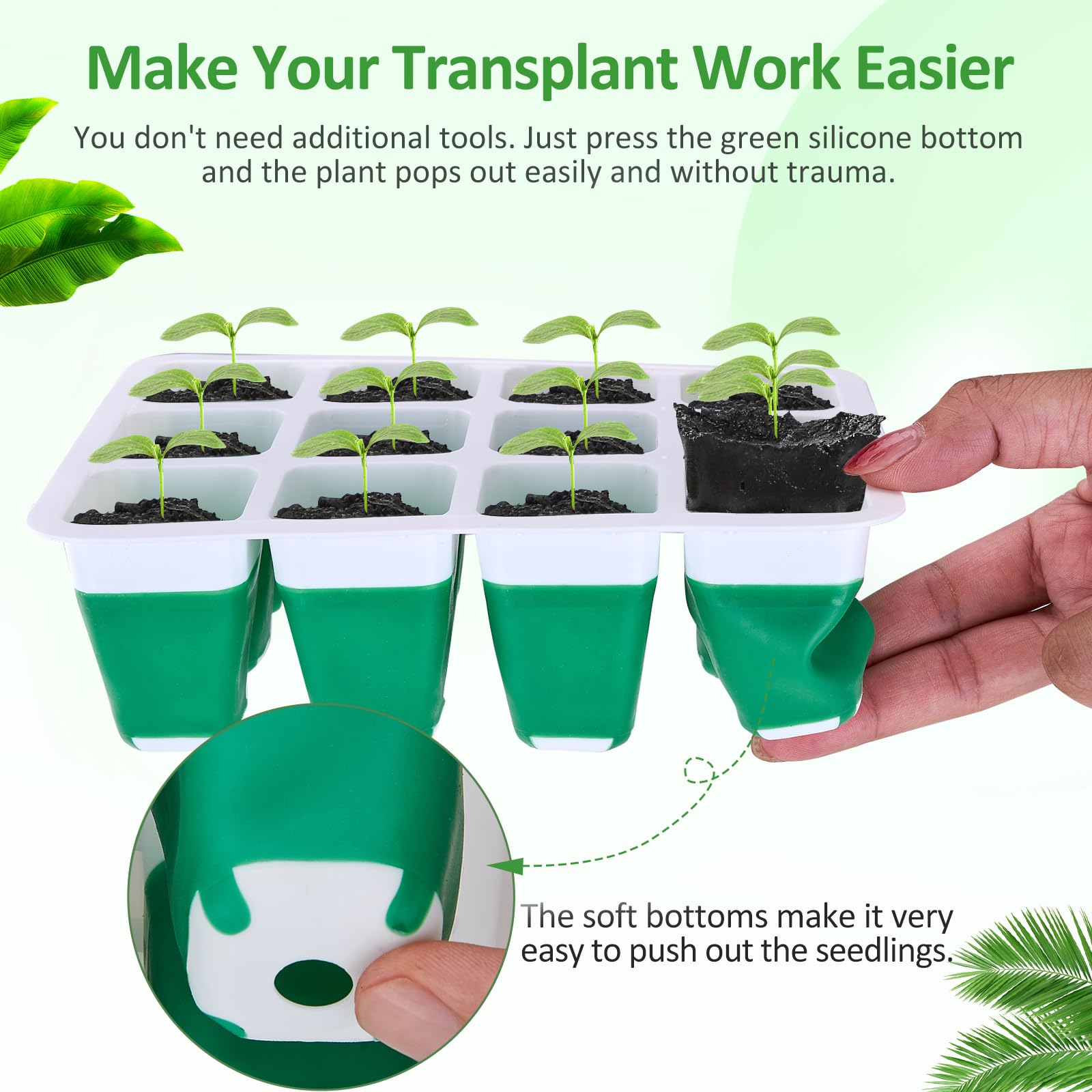 • 【Innovative Transplant Design】: The general shortcomings of the seed starter tray in the initial market are optimized. The cells of our seedling trays have been upgraded. The soft silicone bottoms make it so easy to pop out the seedlings for transplanting or repotting. Other old versions of seed starter kit on the market that is very difficult to take seedlings out of the cells without damaging them. Innovative transplant design make your transplant work easier !
