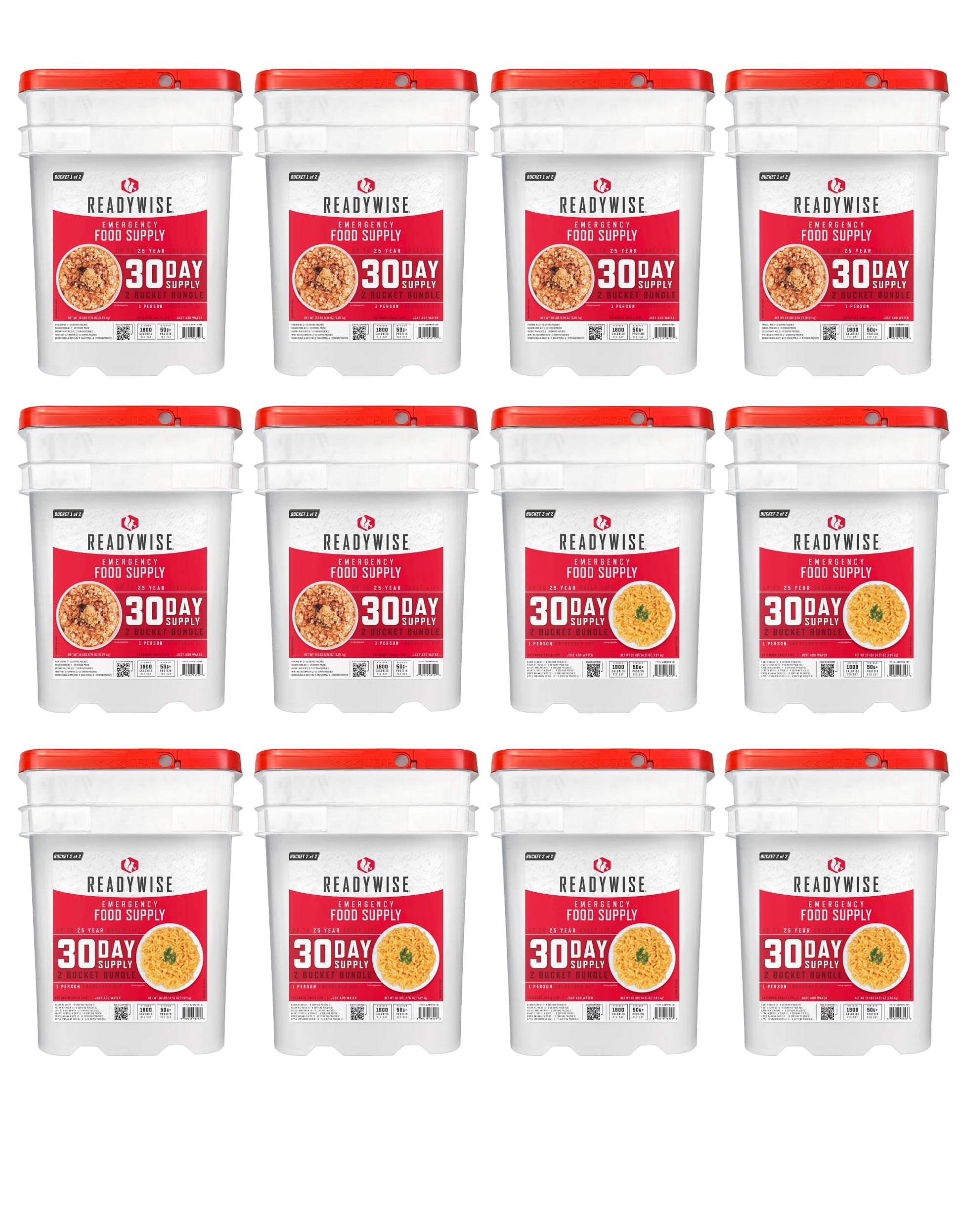 ReadyWise 6 Month Emergency Food Supply - 1,788 Servings, 12 Buckets Freeze Dried Protein Meals, Disaster Survival Food Storage, Ready to Eat, Camping Essentials, up to 25 Year Shelf Life