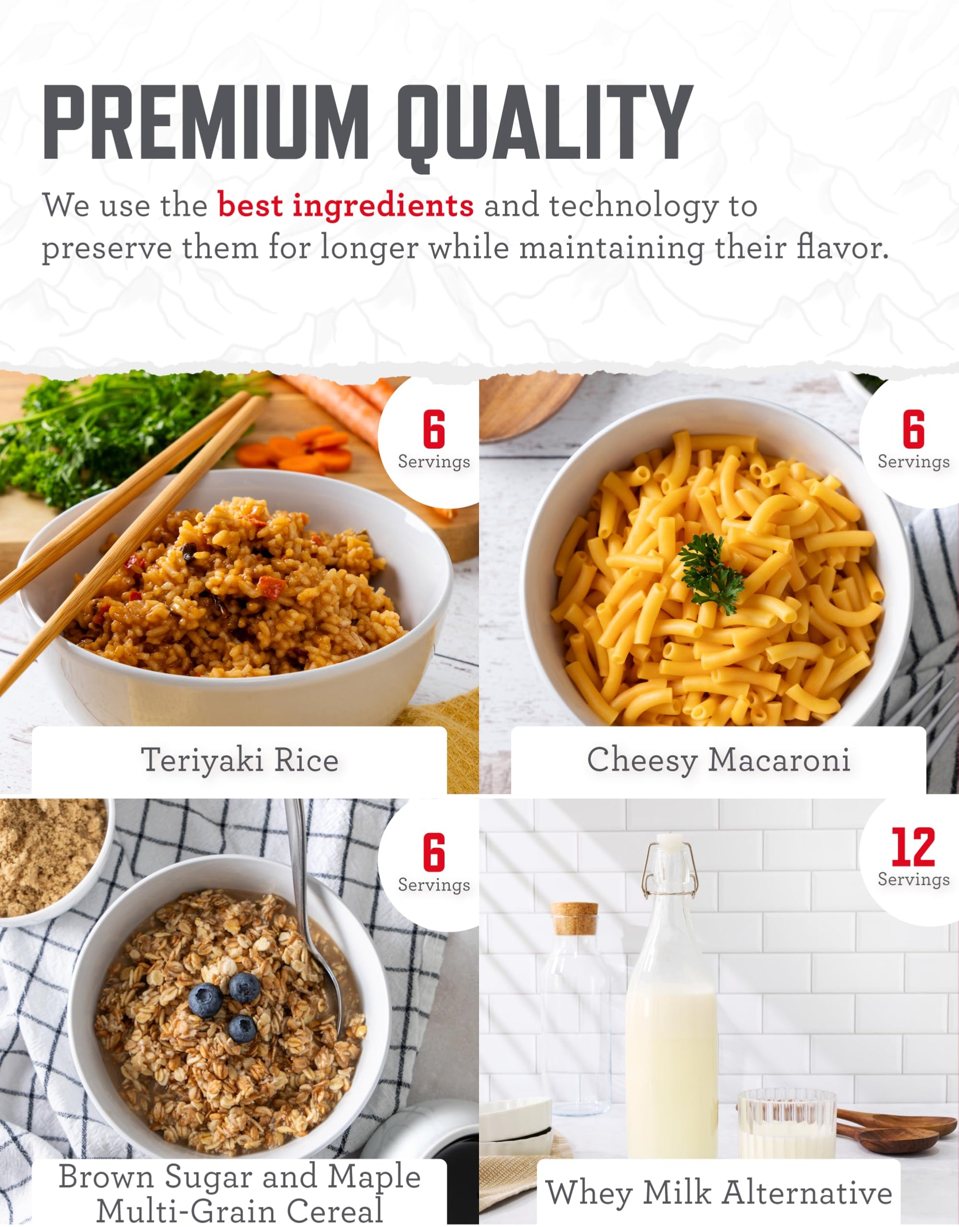 • NUTRITIOUS & YUMMY: READYWISE protein packed disaster preparedness kit delivers bold, savory & satisfying flavor in every portion. Enjoy quick meals or to boost your emergency food kit with options like Cheesy Macaroni, Whey Milk Alternative & more.