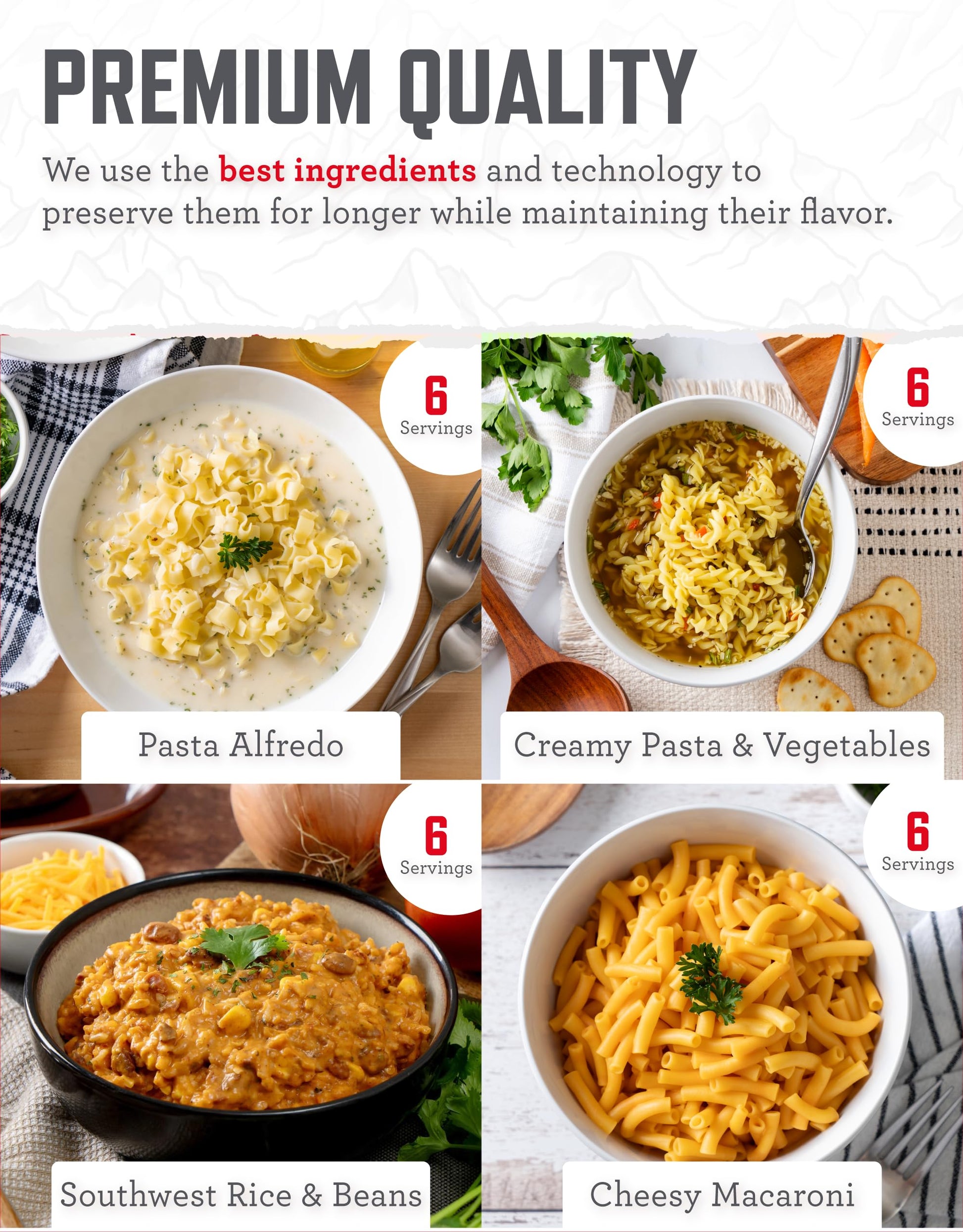 • STORED FOR THE FUTURE: Our bucket offers up to 25 years of shelf life, ensuring your emergency food supply stays fresh. Plus, its stackable design fits conveniently in your pantry, car, or backpack, making it ideal for long term food storage.