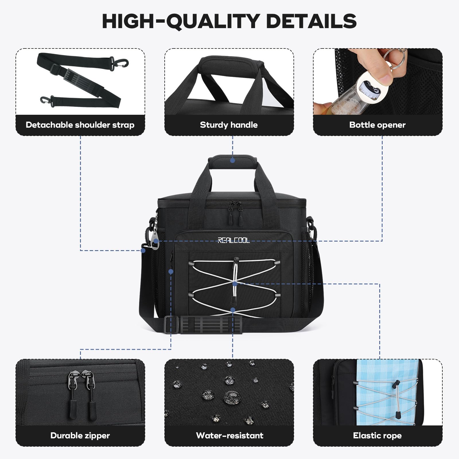 RealCool Soft Cooler Bag 35/45Can, Collapsible Cooler Insulated Leak Proof, Large Lunch Box for Men Women, Soft-Sided Cooler for Picnic, Grocery, Beach, Camping, Travel