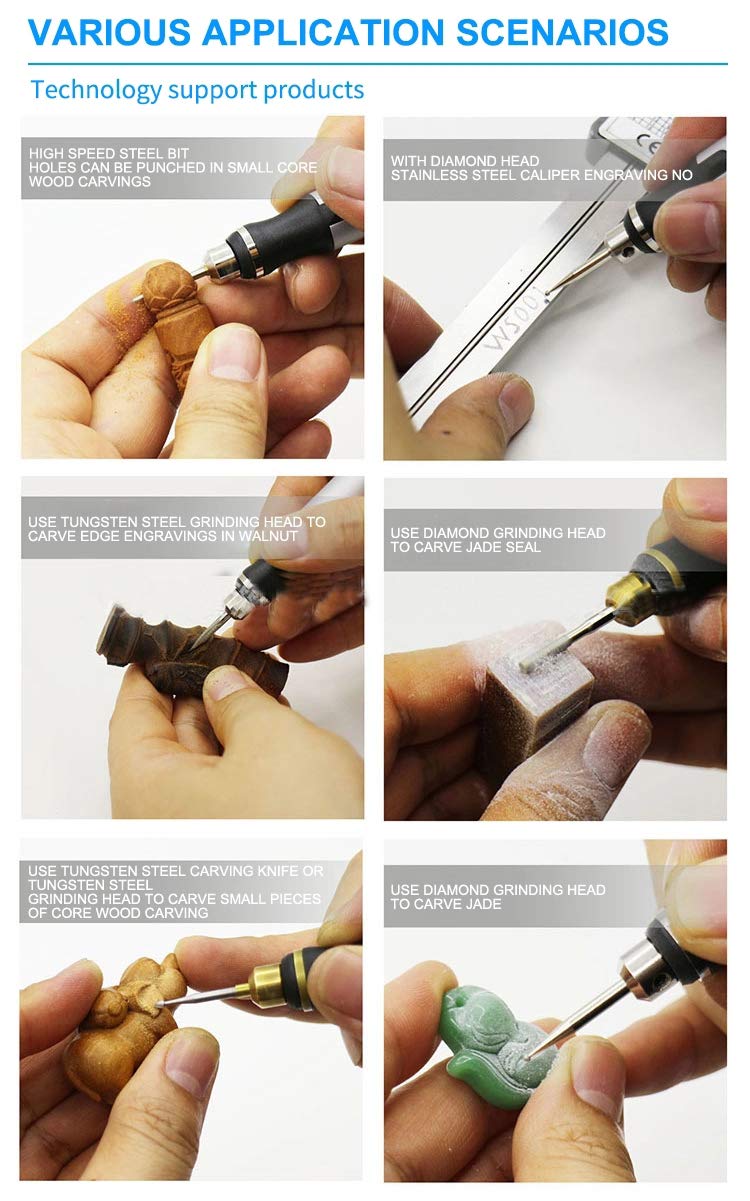 • 5.【Comfortable& Easy to Control】Just holds it like holding a pen, lightweight & compact design, letting you perform intricate work smoothly and effortlessly. Easily control the engraving/drawing path. Makes smooth and clear strokes.