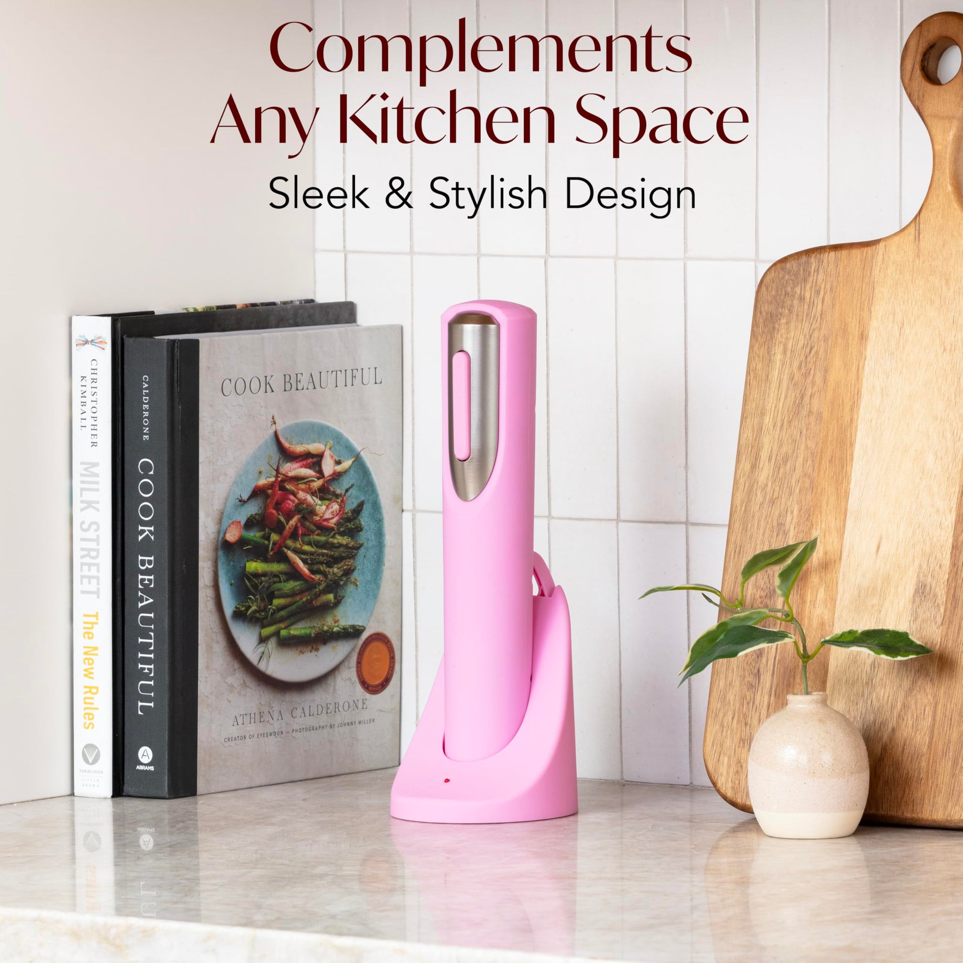 Rechargeable Electric Wine Bottle Opener - Charging Base and Foil Cutter Included with Automatic Wine Opener - Electric Corkscrew for Easy Cork Removal - Best Gift for Wine Lover (Pink & Silver)