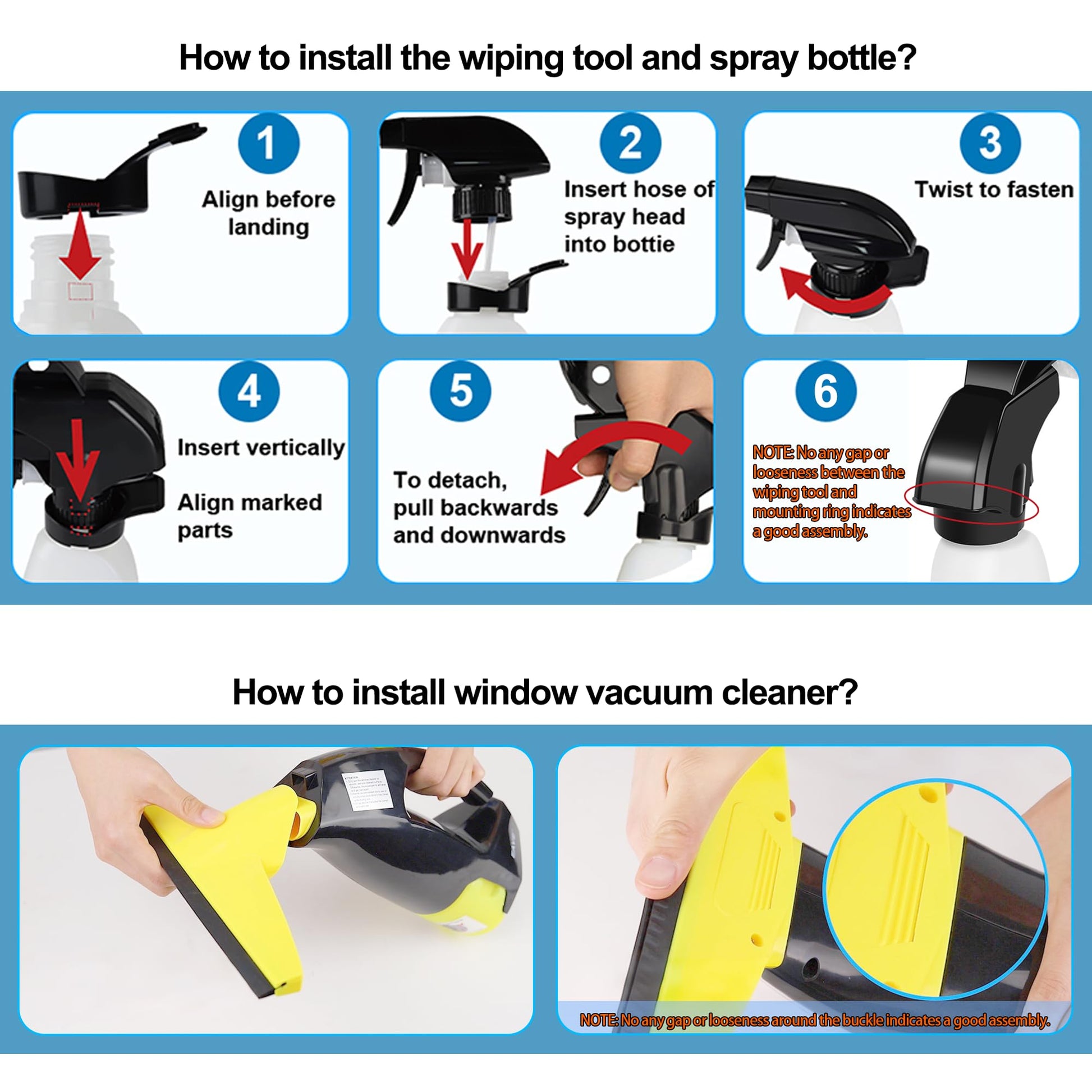 • Easy to Use: Mist, Wipe, Vacuum: First mist the surface by using the included spray bottle, then wipe away dirt and stains with the microfiber pad attached to the spray bottle, and finish by vacuuming up the dirty water with the window vac without any streaks or drips left.