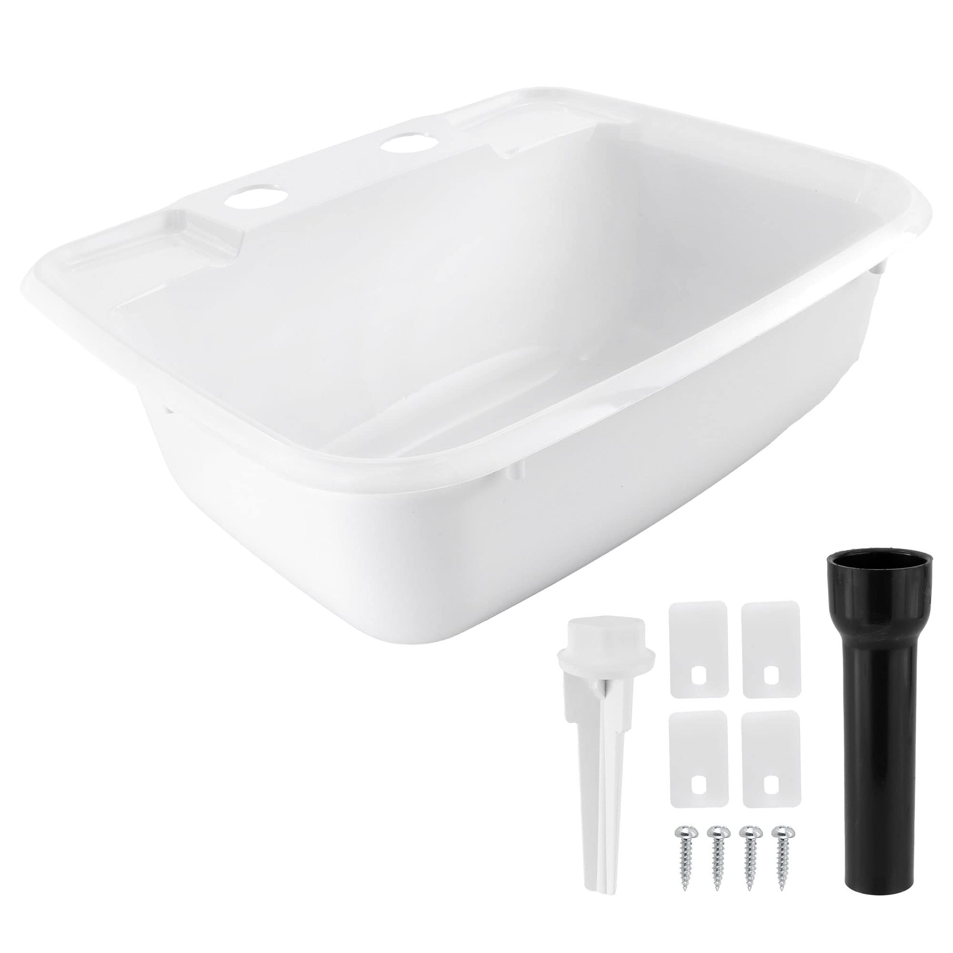 RecPro Rectangle RV Bathroom Sink | Single Bowl Lavatory Sink | Camper Basin | Plastic (White)