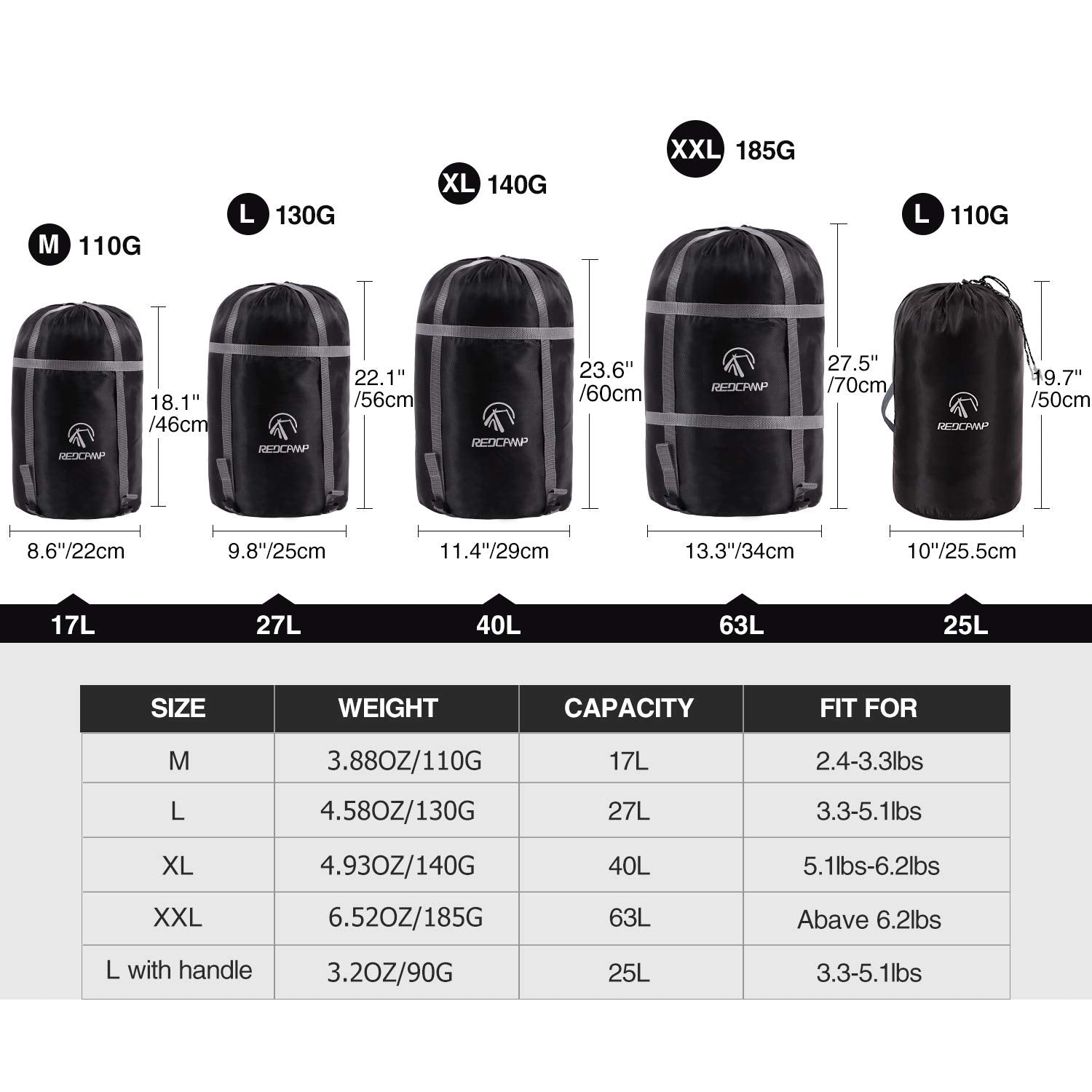 REDCAMP Sleeping Bag Stuff Sack, Compression Sack, Great for Backpacking and Camping Black Heavy Duty XXL