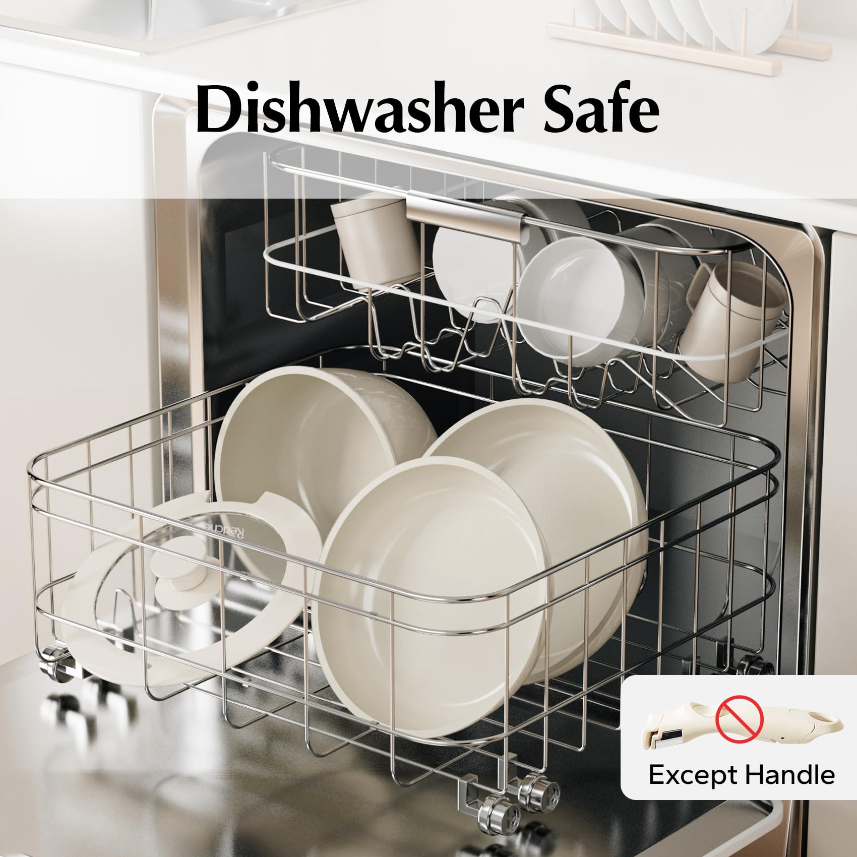 Redchef Ceramic Pots and Pans Set Non Stick, Nonstick Kitchen Cookware Sets, Non Toxic Pots and Pans Set Non Stick, PFAS PFOA & PTFE Free, Detachable Handle Pots and Pans 5 Piece, RV Cookware