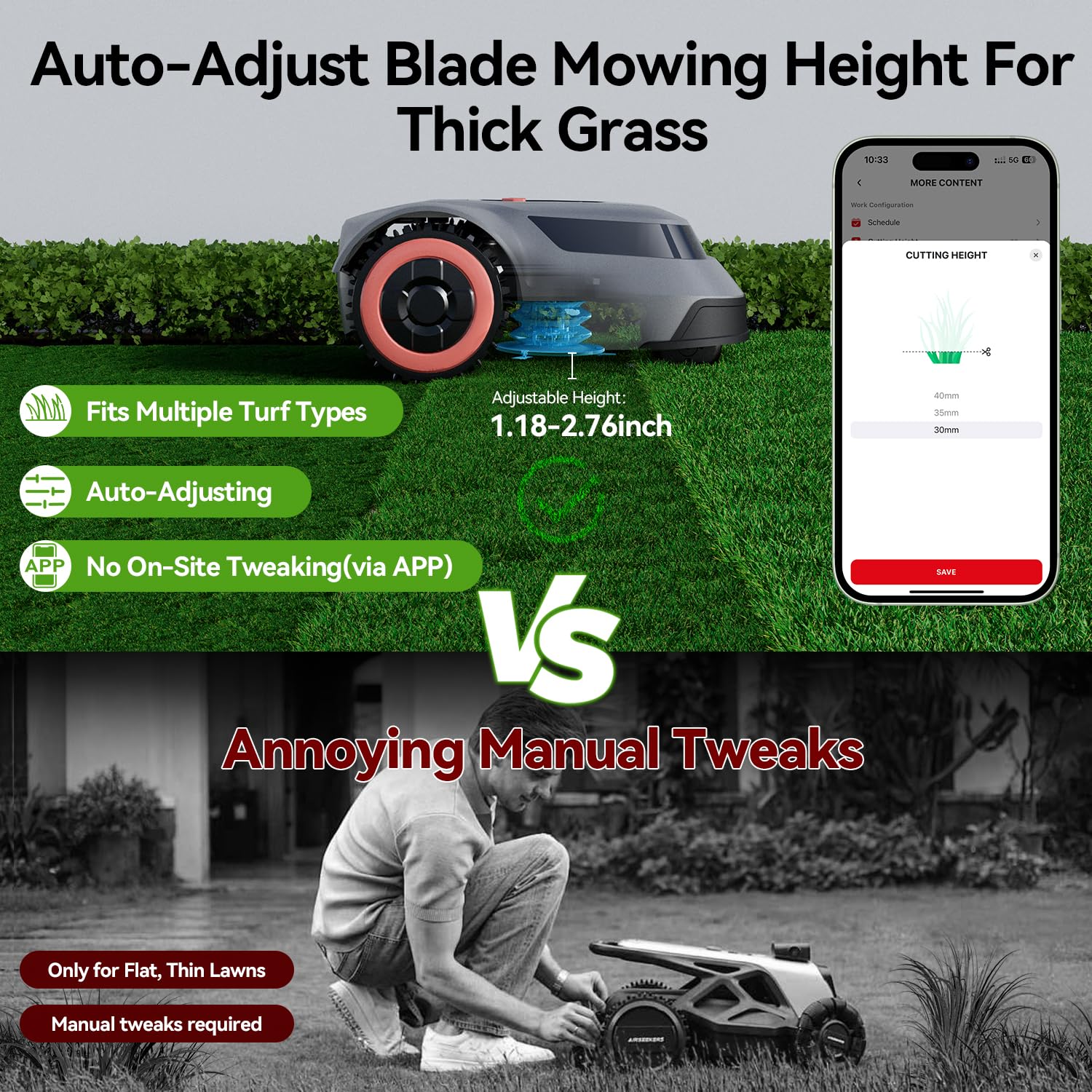 Details: Redkey MGC1000 Robot Lawn Mower with 393ft Boundary Wires for 0.20 Acre (1/6 Acre), 45% Slope, 70Mins Runtime, Auto Recharge, Automatic Robotic Lawn Mower w/Precise Location & Breakpoint Detection