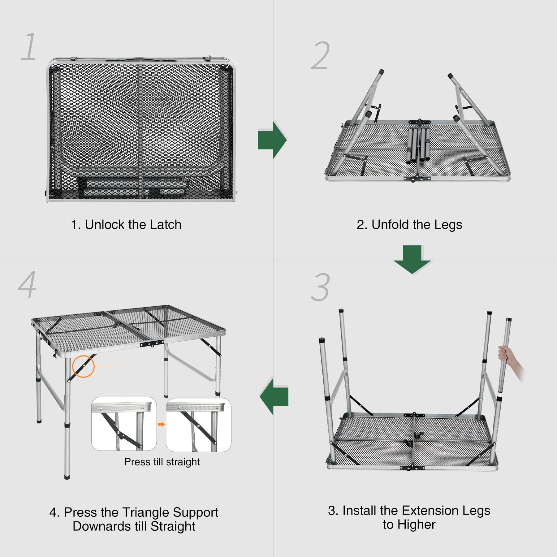 • 2 Adjustable Heights: RedSwing Aluminum Folding Grill Table is 36"x24"/91cmx60cm, height is 15"/38cm in low, 28"/71cm in high. Pack size is 24"x3"x18"/60cmx 7cmx45cm when folded.