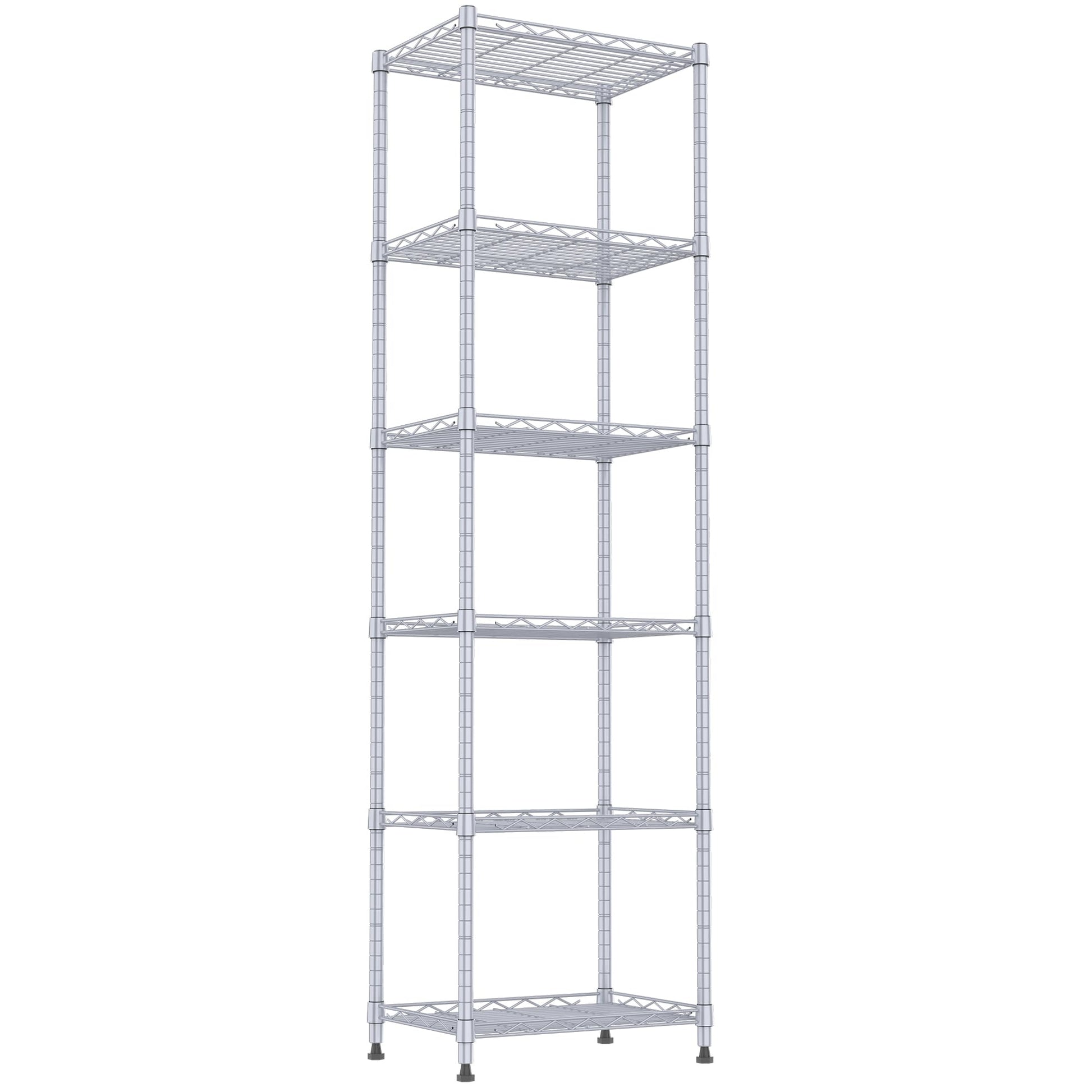 REGILLER 6 Wire Shelving Steel Storage Rack Adjustable Unit Shelves for Laundry Bathroom Kitchen Pantry Closet(Silver, 11.7" D x 16.8" W x 63" H)