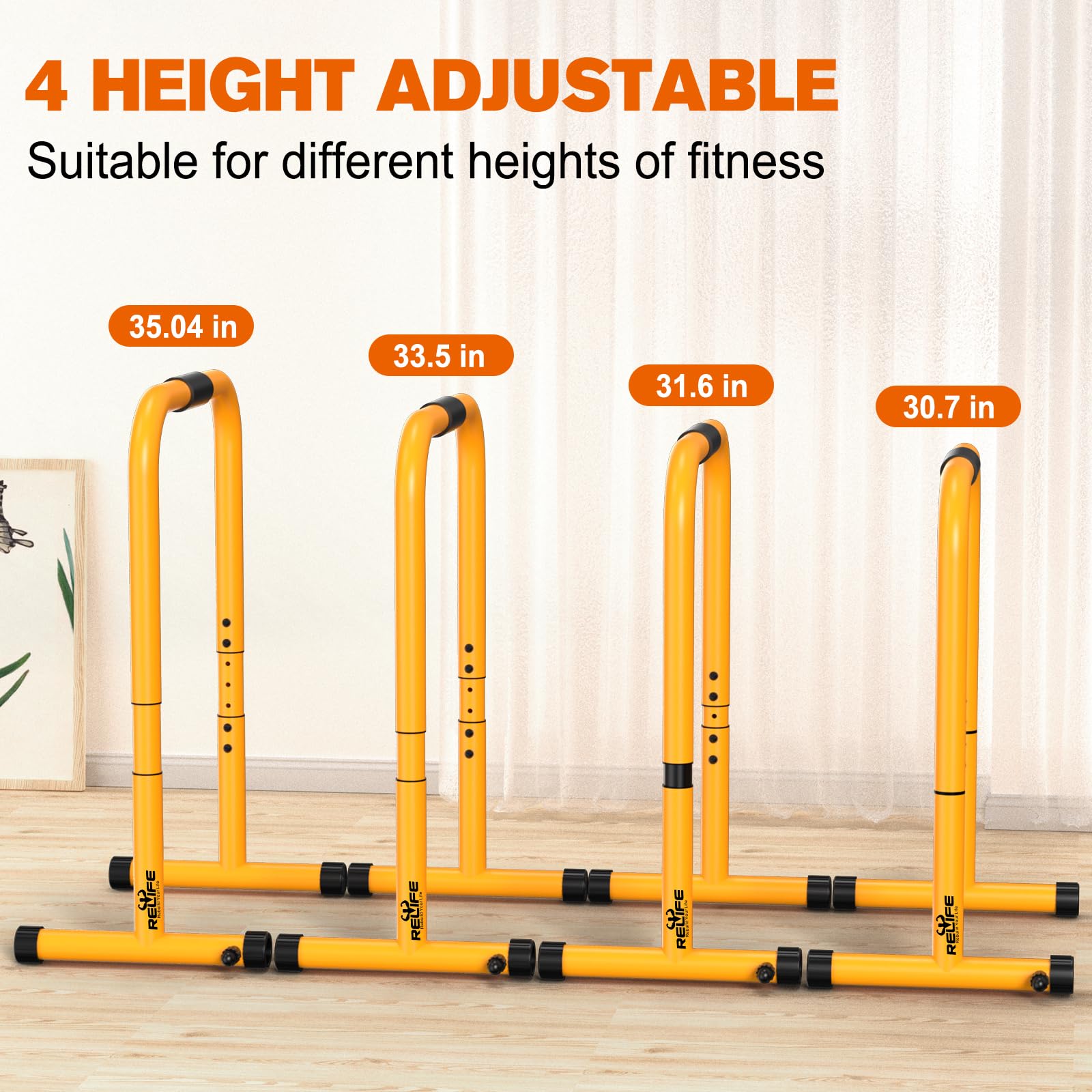 RELIFE REBUILD YOUR LIFE Dip Bars & Dip Station Functional Heavy Duty Dip Stands Fitness Workout Dip bar Station Stabilizer Parallette Push Up Stand (Yellow)