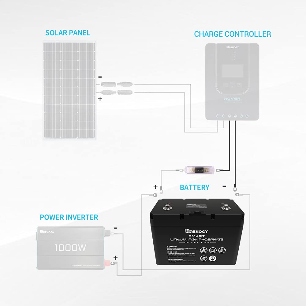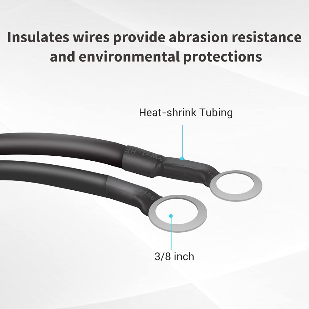 Details: Renogy 8ft 10AWG Wire Copper Solar Power Tray Cable is a set of two wires made for connecting your charge controller to your battery. Specialized with battery rings on one end for effortless connection to your battery and exposed wire on the other end to lead directly into your charge controller; this wire makes system set up as easy as can be!
