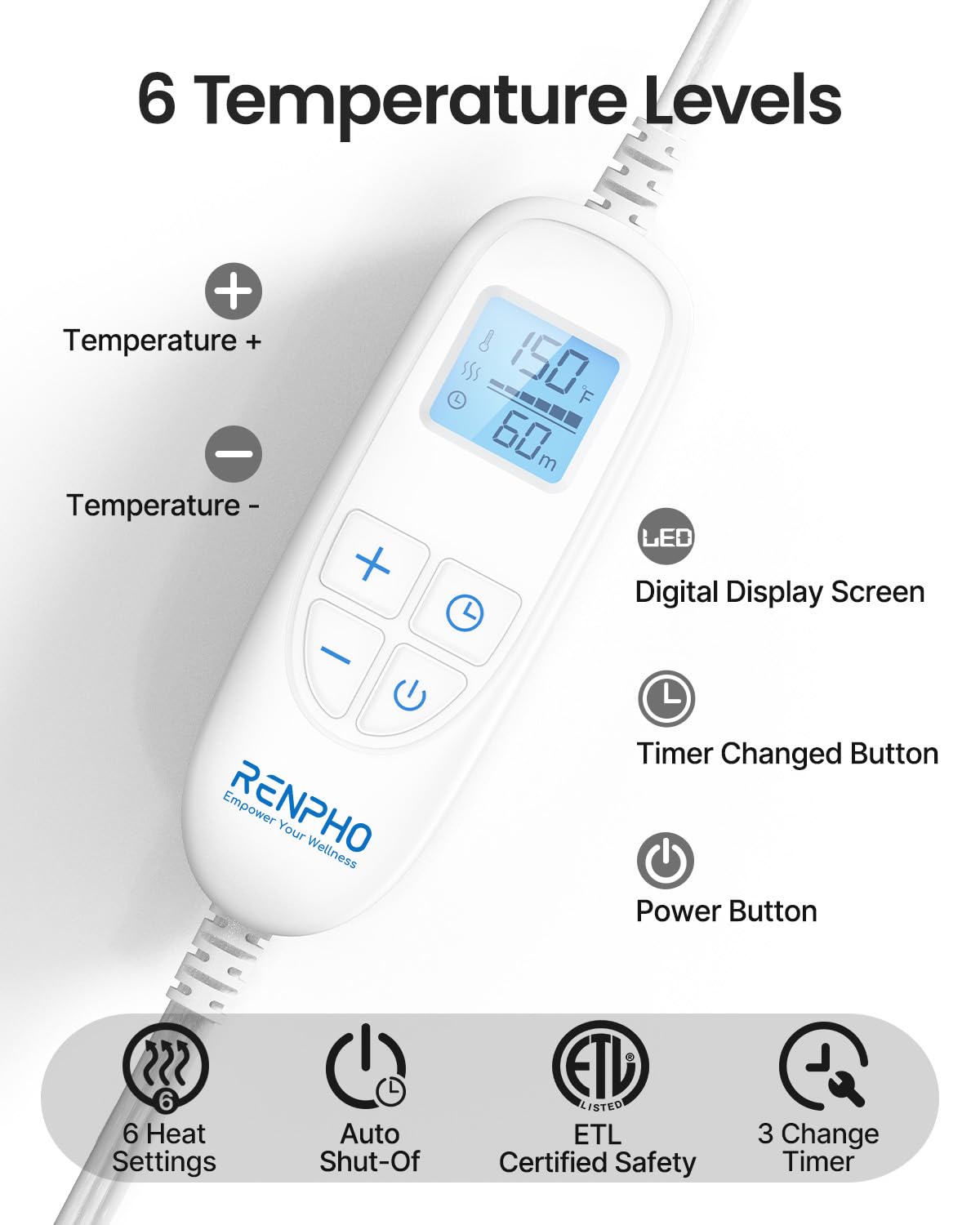 RENPHO Electric Heating Pad for Back Pain Relief, Birthday Gifts for Women Men Mom Dad Elderly, FSA Eligible Items Only List, Large Heat Pad for Neck and Shoulders, 24"x33", ETL Certified, Gray