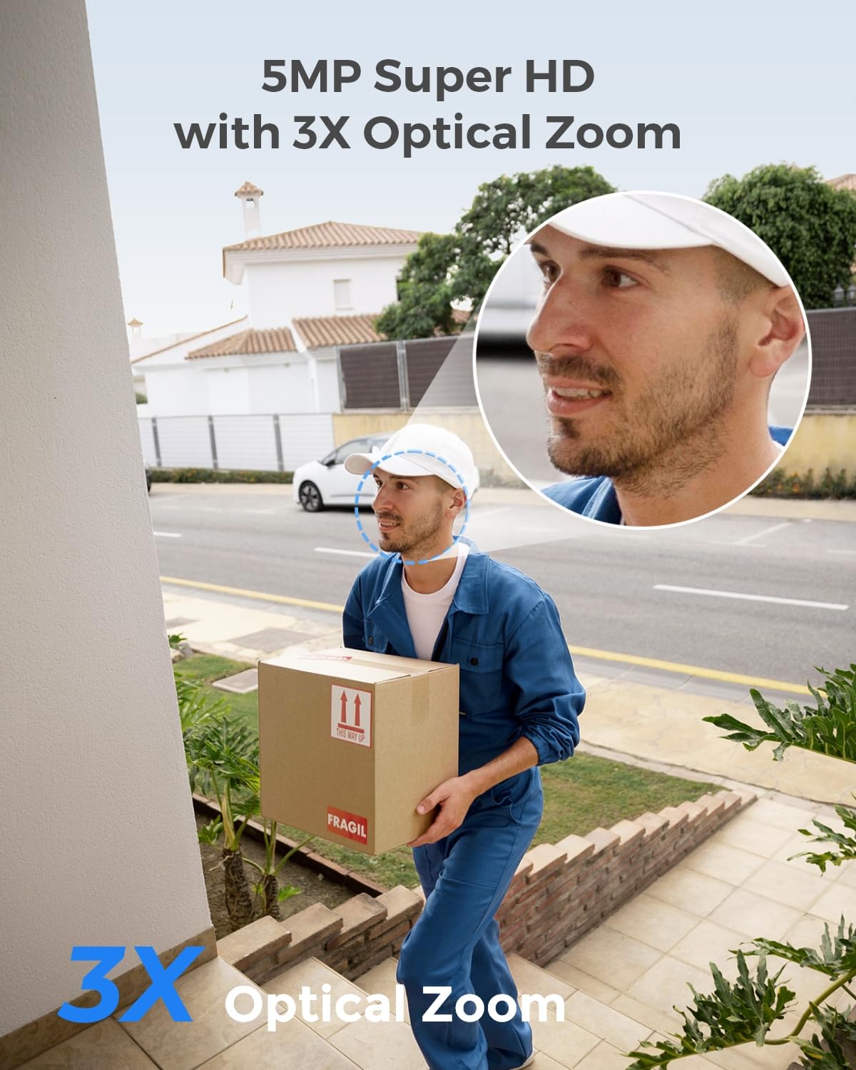 • SEE MORE DETAILS BOTH DAY AND NIGHT: Get a closer look at distant details with 3× optical zoom and illuminate the darkness with powerful spotlights for crisp, color night vision. Capture every important detail, no matter the time of day.