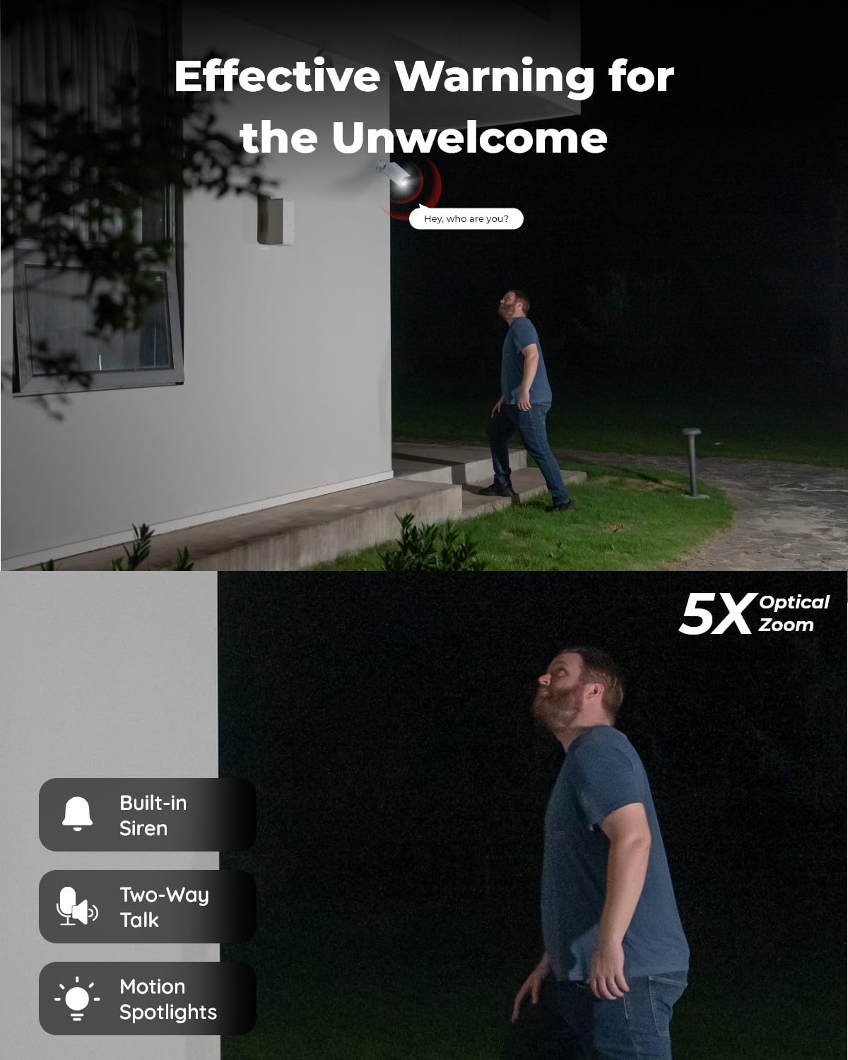 • 4K Ultra HD & 5X Optical Zoom & 123° Wide Angle: The varifocal lens allows you to 5X zoom in on the distant object without compromising the 8MP resolution. Cover almost every angle with the built-in wide 123° viewing angle (H: 105°, D: 123°), allowing you to keep an eye on what matters most.