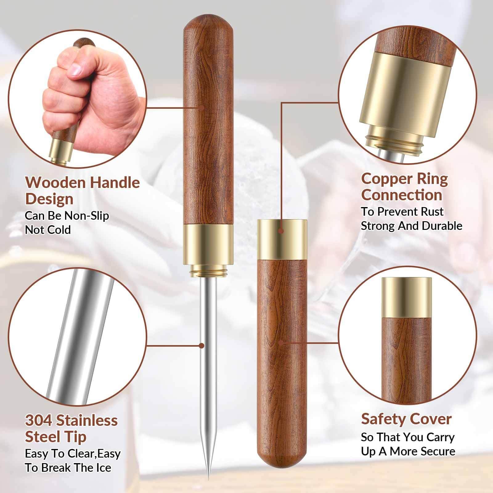 Non-Slip With Safety Cover: Pearwood Non-Slip Handle, This ice pick has a cover that can cover the tip when not in use, preventing scratches or injuries