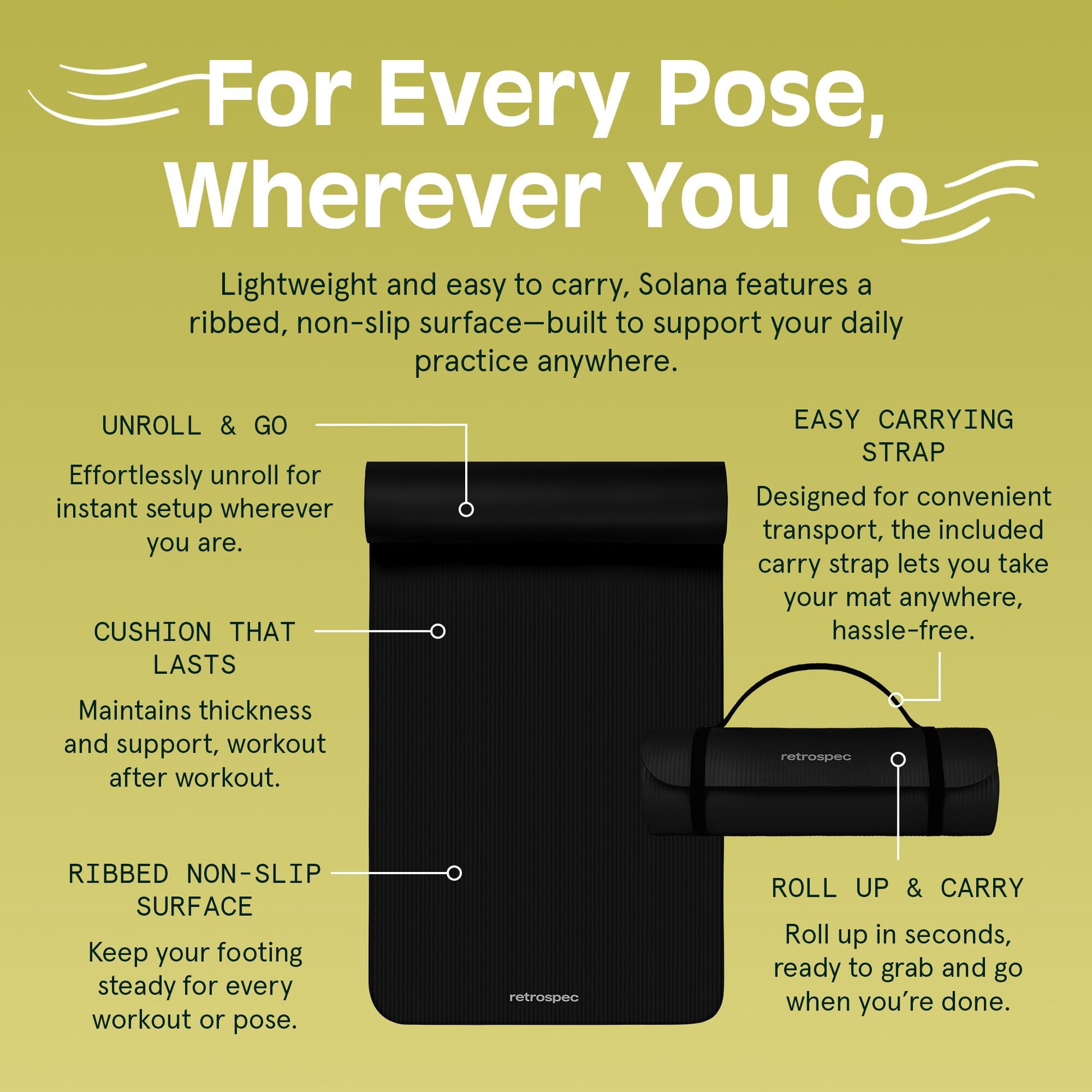 Retrospec Solana Yoga Mat 1" Thick w/Nylon Strap for Men & Women - Non Slip Exercise Mat for Home Yoga, Pilates, Stretching, Floor & Fitness Workouts - Black