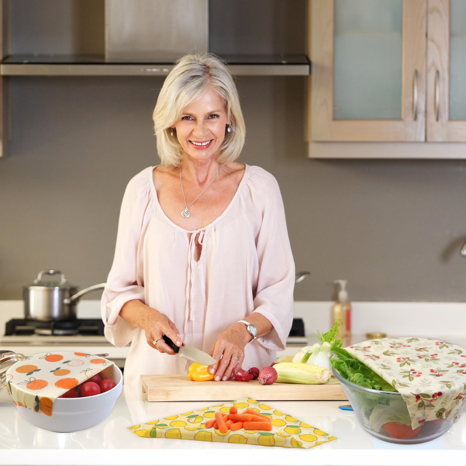• 【REUSABLE & WASHABLE】: Use the warmth of your hands to soften the beeswax wrap and form over a container or foods. Wash in cool water with mild soap and air dry then use again. Our high grade beeswax food wraps will last up to a year with regular use. Keep food wraps away from heat and don't put in the dishwasher. Our reusable food wrap is biodegradable, sustainable and washable. Say goodbye to plastic wrap and cling wrap, and it's a great addition in your eco-friendly kitchen items.
