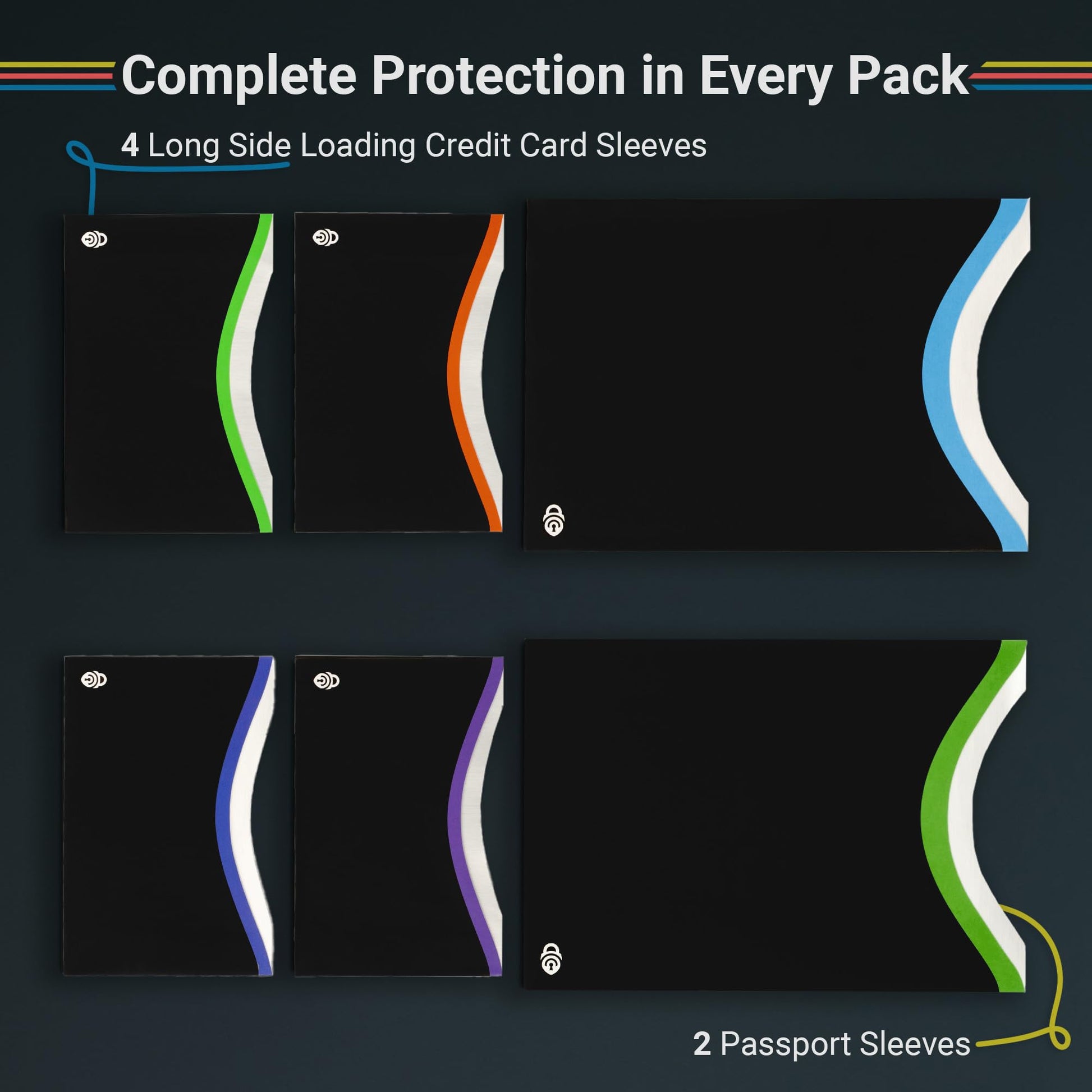 RFID Blocking Credit Card & Passport Sleeves (4 Long Side Credit Card & 2 Passport Protectors) – RFID Blocking Identity Theft Protection, Slim Design – Ideal for Travel and Everyday Use