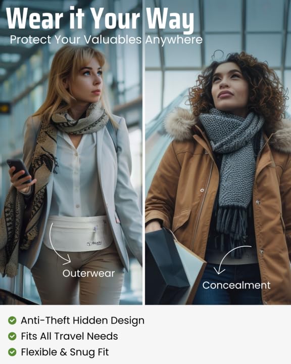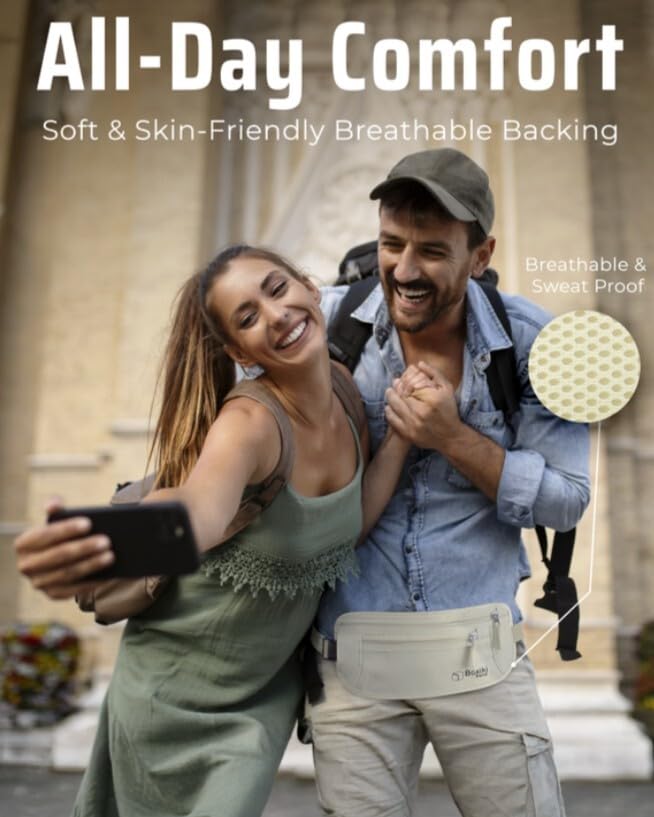 • MAXIMUM COMFORT & BREATHABLE DESIGN – Say goodbye to discomfort! Our travel waist pouch features a soft, moisture-wicking mesh backing and an adjustable, reinforced elastic strap for a snug yet breathable fit. No sweating, itching, or irritation – just all-day comfort while you travel with this under clothes travel pouch.