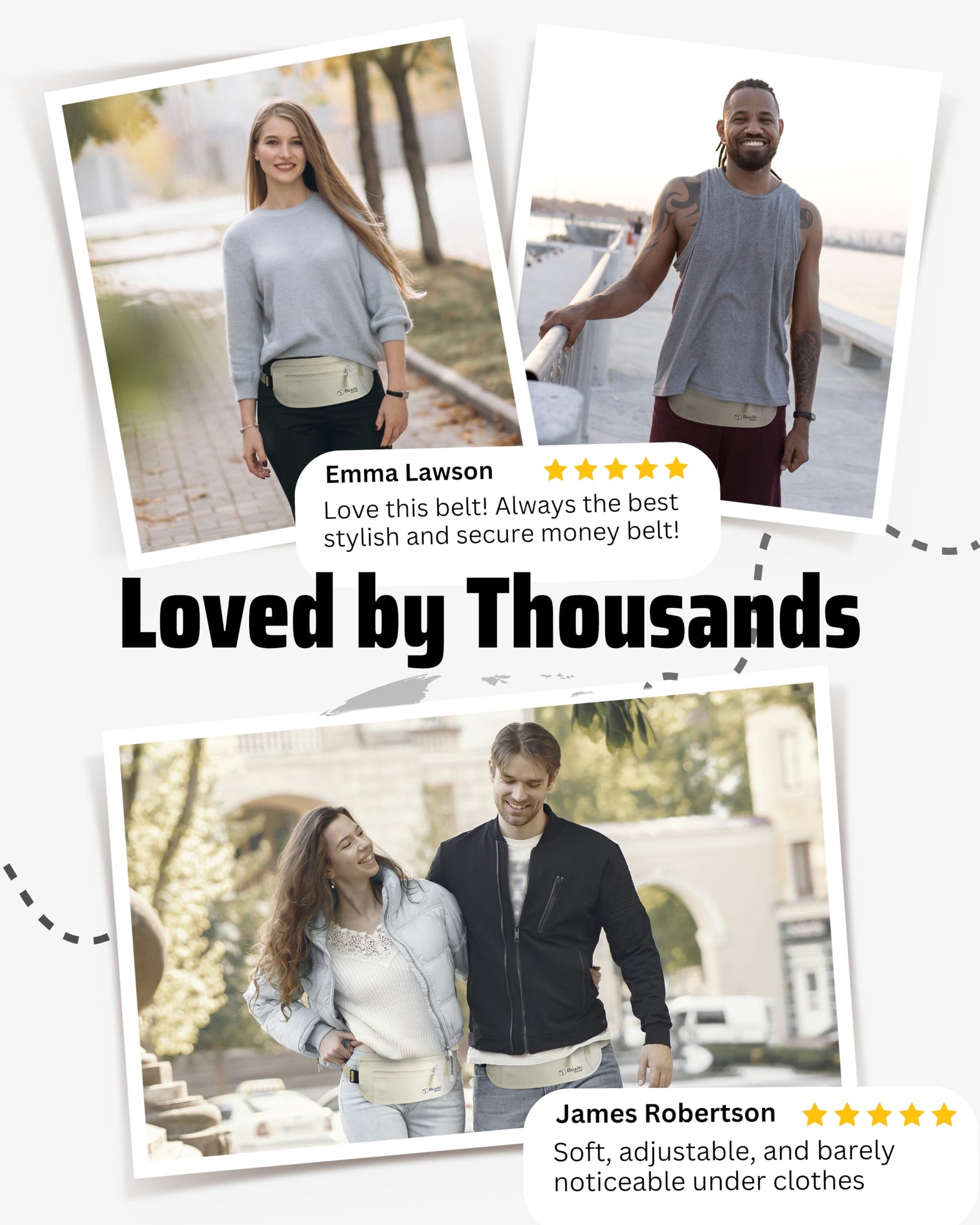 • ADJUSTABLE & SECURE FIT FOR ALL BODY TYPES – Featuring a reinforced, high-quality buckle and adjustable strap (fits 26" to 50" waists), this money belt stays in place without bouncing or shifting. Designed for all travelers, this money belt for men and women provides a secure, comfortable alternative to bulky purses or wallets.