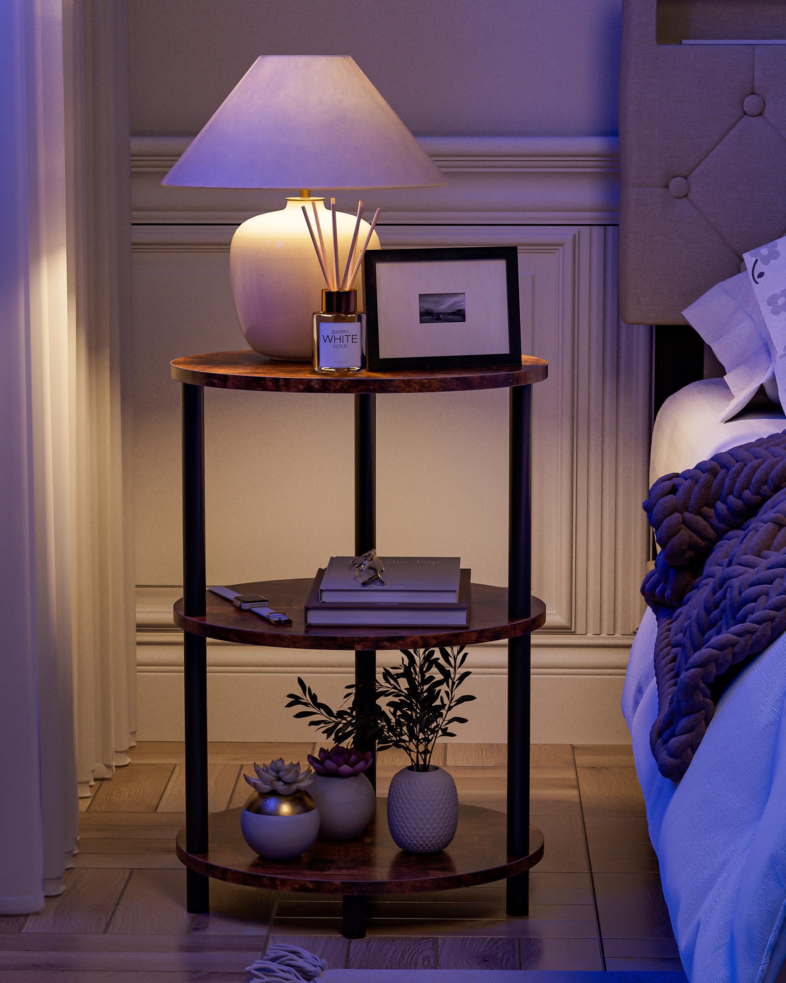 • πŸ‘π—”π— π—£π—Ÿπ—˜ 𝟯-π—§π—œπ—˜π—₯ 𝗦𝗧𝗒π—₯π—”π—šπ—˜ β€” Featuring three spacious layers, this small side table for small spaces offers plenty of room for organizing books, drinks, dΓ©cor, or small plants. Its vertical design maximizes storage without taking up too much floor space, keeping your room neat and tidy.