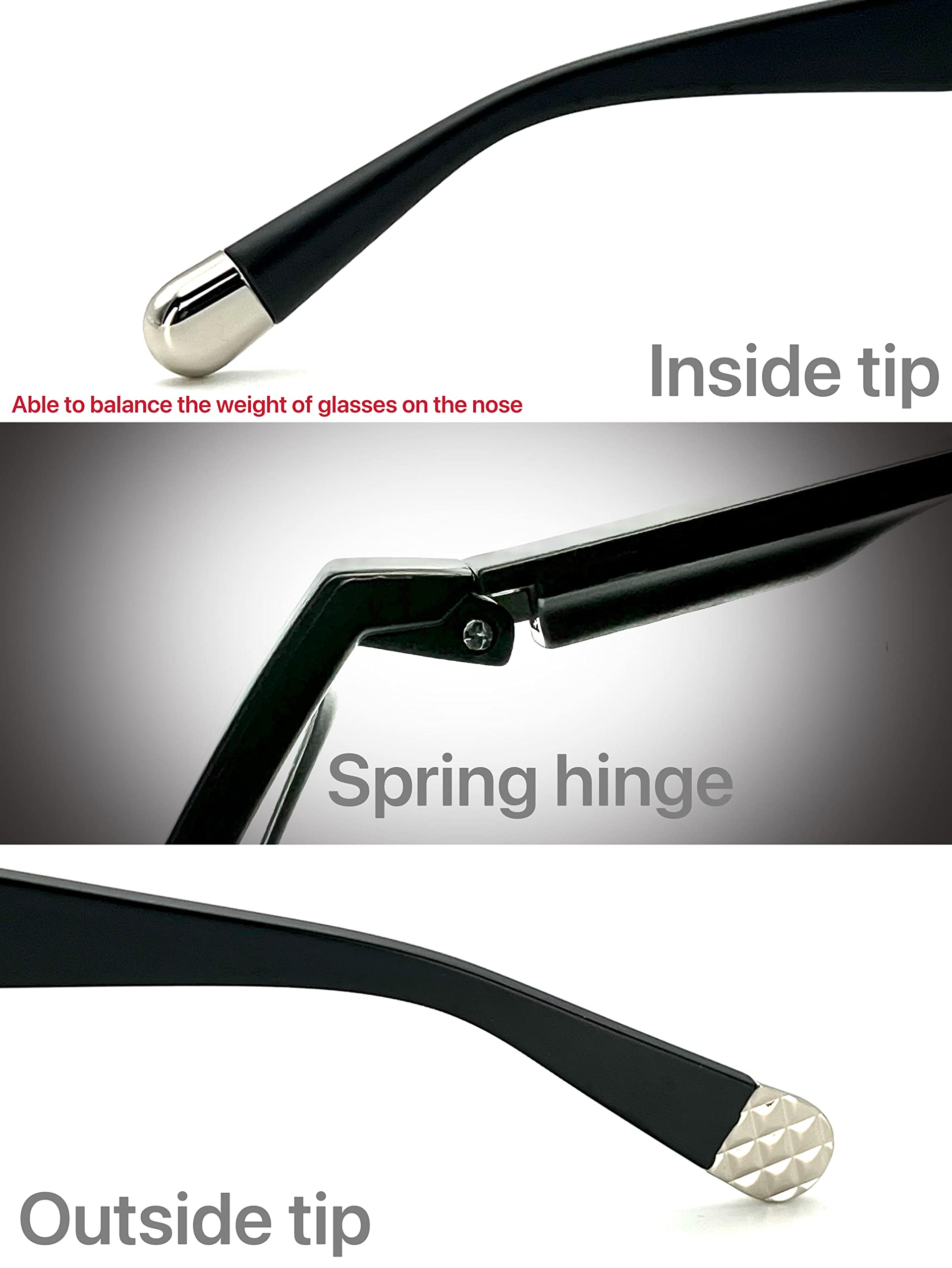 • πŸ‘“ RETRO STYLE FASHION DESIGN - Designer Made Trendy Retro Frame, coupled with the Anti-Reflection AR Coating of the multilayer film for the lens, makes the lens Non-Reflective and has high definition, making glasses not only stylish, but your eyes feel fresh and more energetic. Excellent PC Rectangular Frame Material, Non-Allergic, the frame uses spring hinges, which is comfortable to wear and does not put additional pressure on the face.