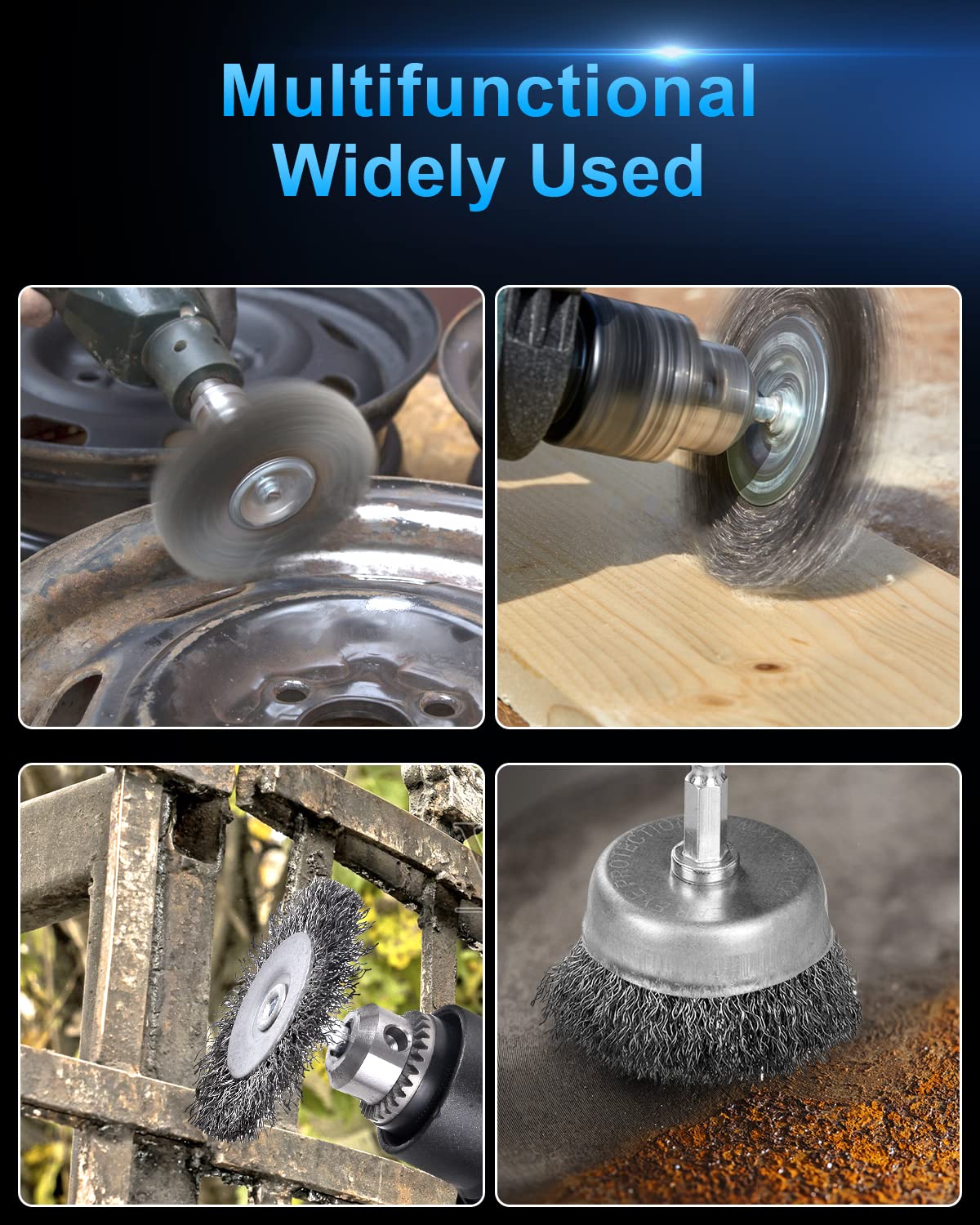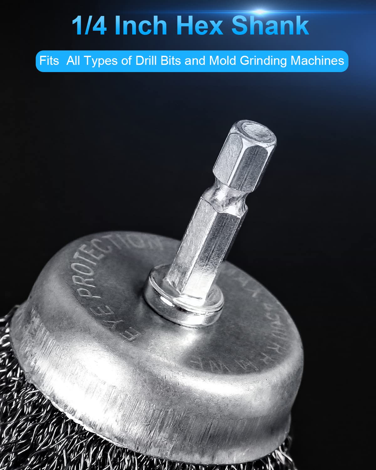 • 6 Pack Wire Brush Set: This package includes: 2 pcs carbon steel cup brush, 2 pcs wheel brush, 2 pcs pen brush with 1/4 inch hex shank. Hardened steel wire long maximum 4500 RPM.
