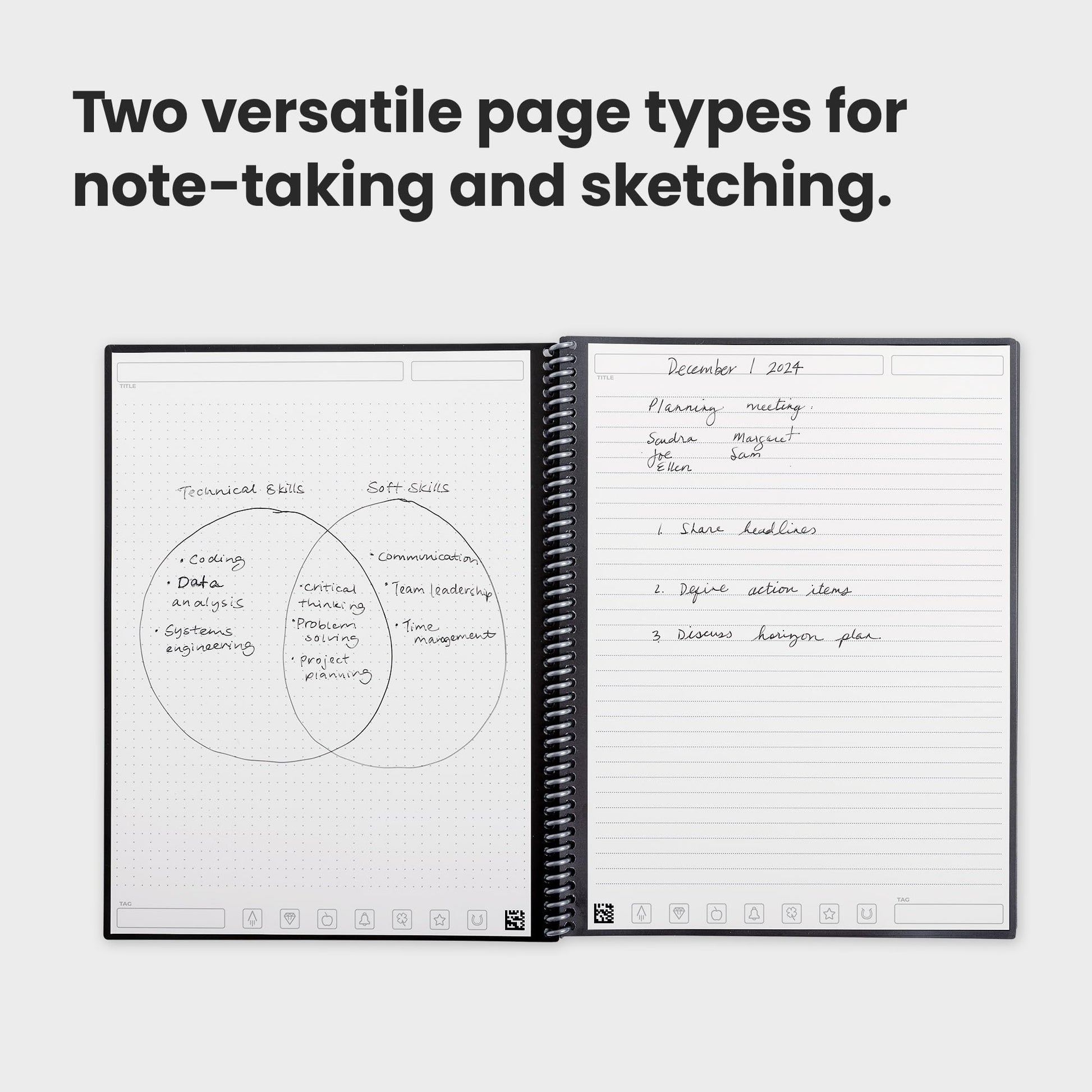 - High-Quality & Durable Materials: Premium reusable paper, durable spiral binding, and a waterproof cover. The flexible design allows it to lay flat for comfortable writing and planning sessions, whether you're at home, school, or the office.