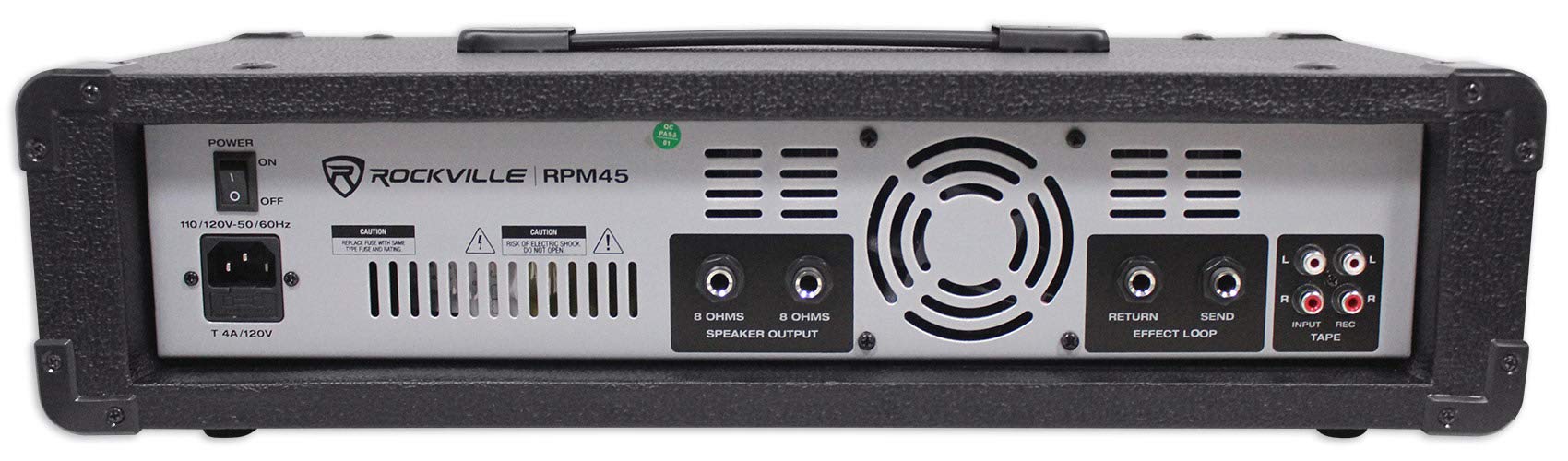 Details: 90 Day Money Back Guarantee This item is insanely loud and has clean sound! If you are not happy in 90 days we will take the item back for a full refund! The Rockville RPM45 is a 4 channel wood cabinet powered mixer with USB. This mixer is one of the best sounding powered mixers on the market. This will compete with the most premium brands on the market in terms of sound quality and how much power this has. I personally tested our RPM series of powered mixers and I was completely blown away! I ran this to (2) Yamaha speakers and even with the volume turned up half way these were insanely loud! When I cranked the volume to 90 % the clarity was just un-believable. This powered mixer is rugged and tough! It is enclosed in a high quality wooden enclosure which can take a real beating! This model has 4 channels making it versatile enough for most parties and gigs. It has adjustable delay and echo effects, along with individual controls on each channel for reverb, bass, and treble. We added built in a USB input giving you an addition playback option.