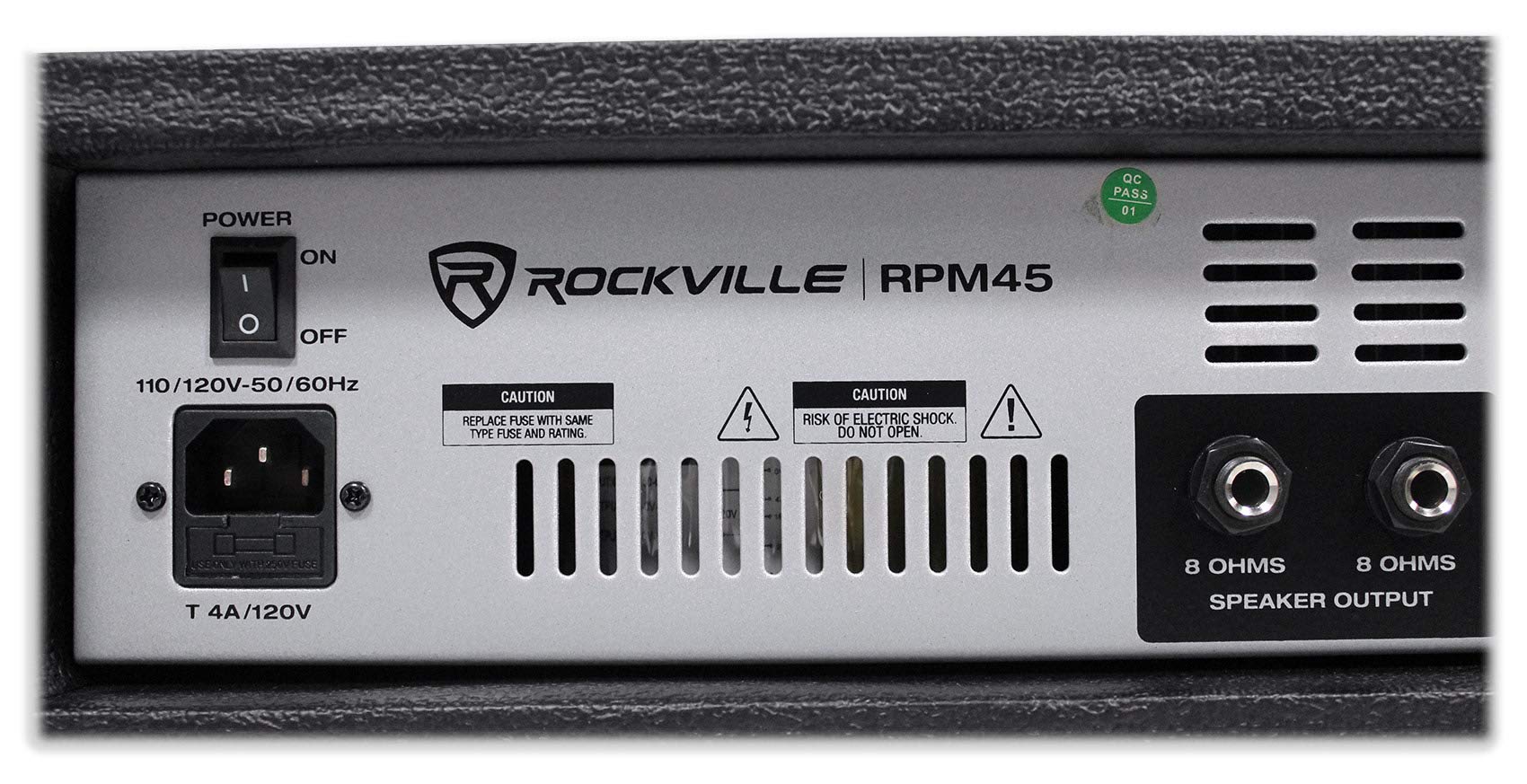 Rockville RPM45 1800w Powered 4-Channel Mixer Amplifier, USB, Effects, Phantom Power, Durable Wooden Enclosure, Compact Design, for Musicians and Small Venues
