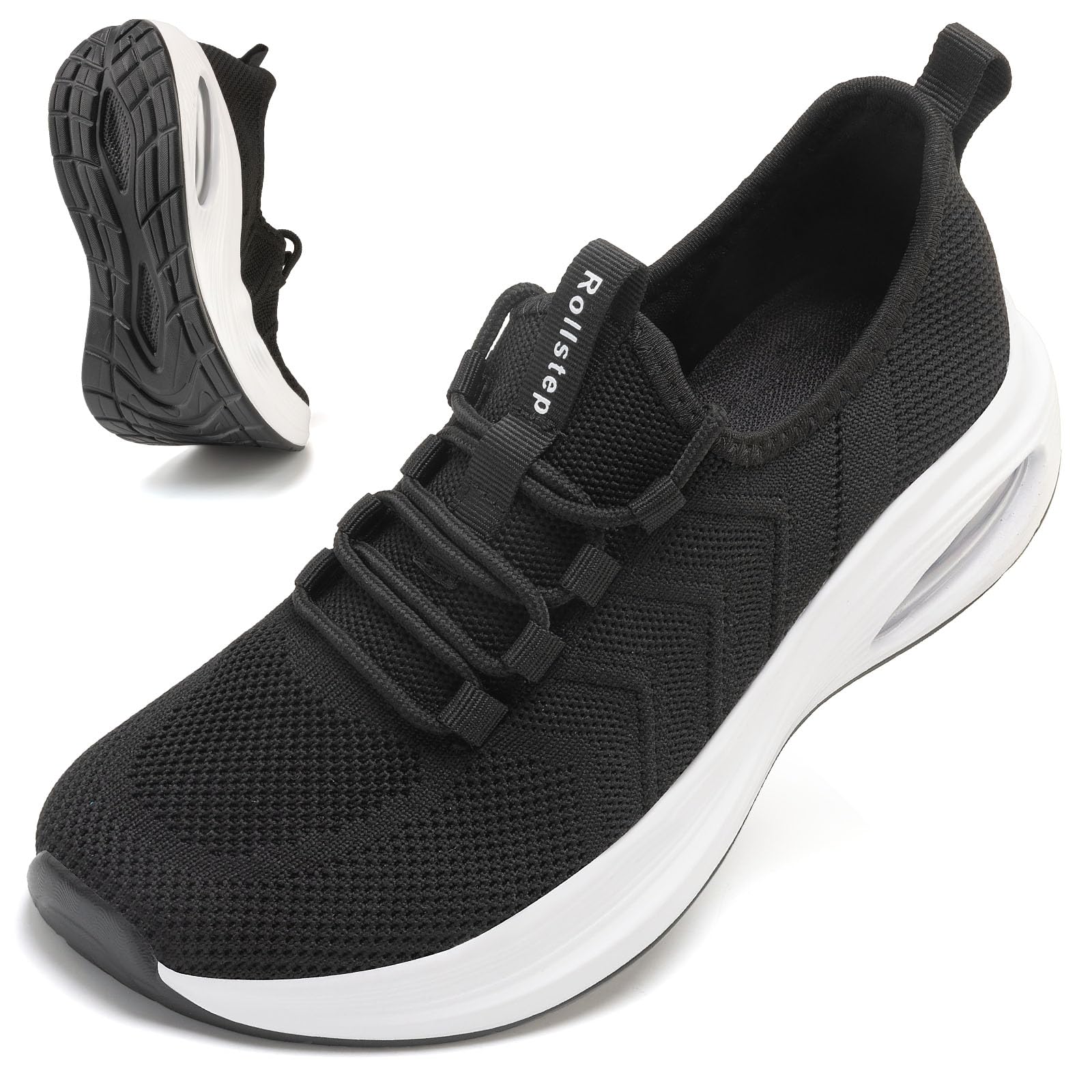 Rollstep Wide Toe Box Shoes Women Extra Wide Width Sneakers Diabetic Air Cushion Road Running Shoes Ultra Light Wide Tennis Sneakers Gym Training Breathable Walking Shoes Black 39