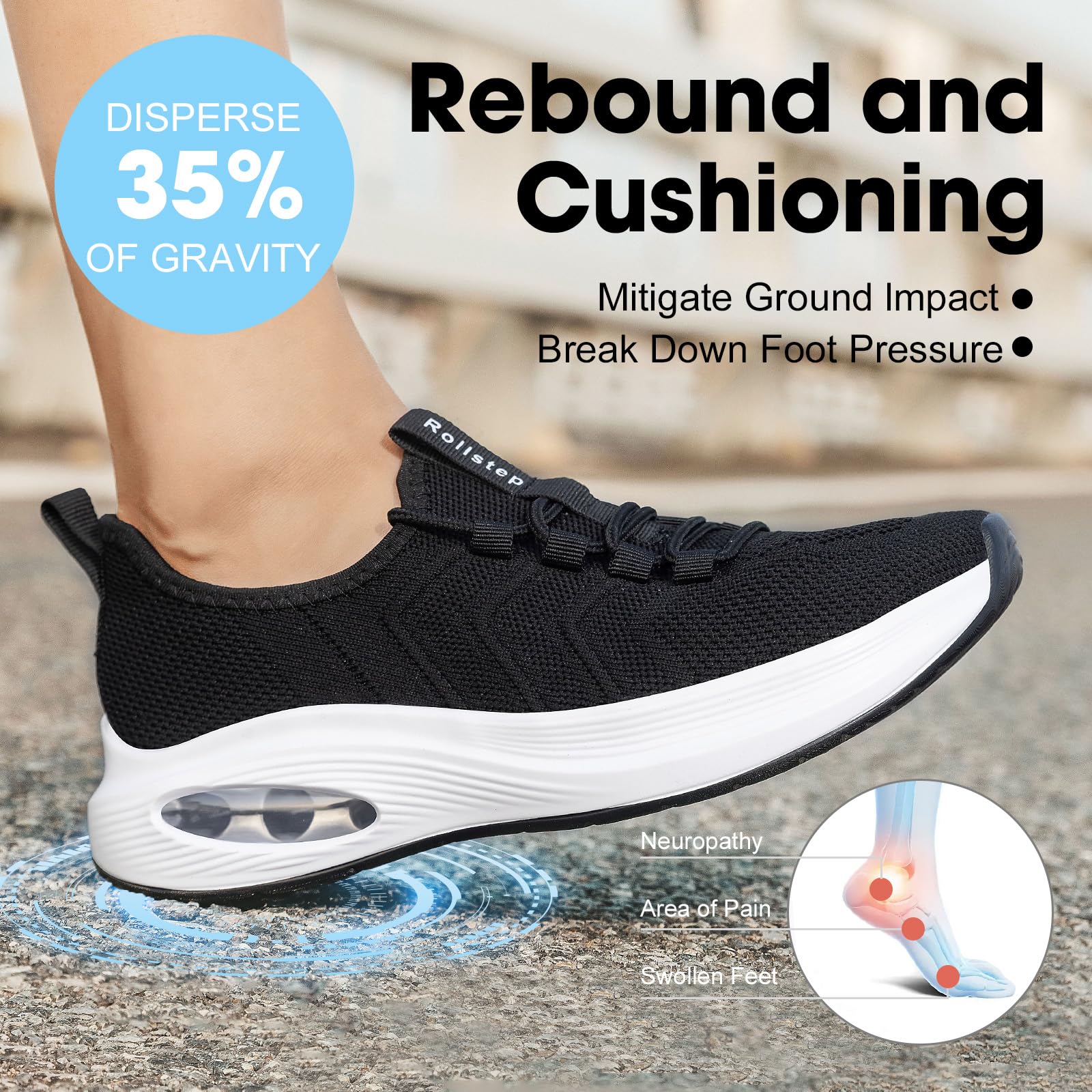 • Unique Air Cushion Design: This wide width sneakers for women adopts advanced air cushion technology to provide excellent shock absorption and cushioning effect for every step, reducing foot fatigue and making your walking and exercise more comfortable.