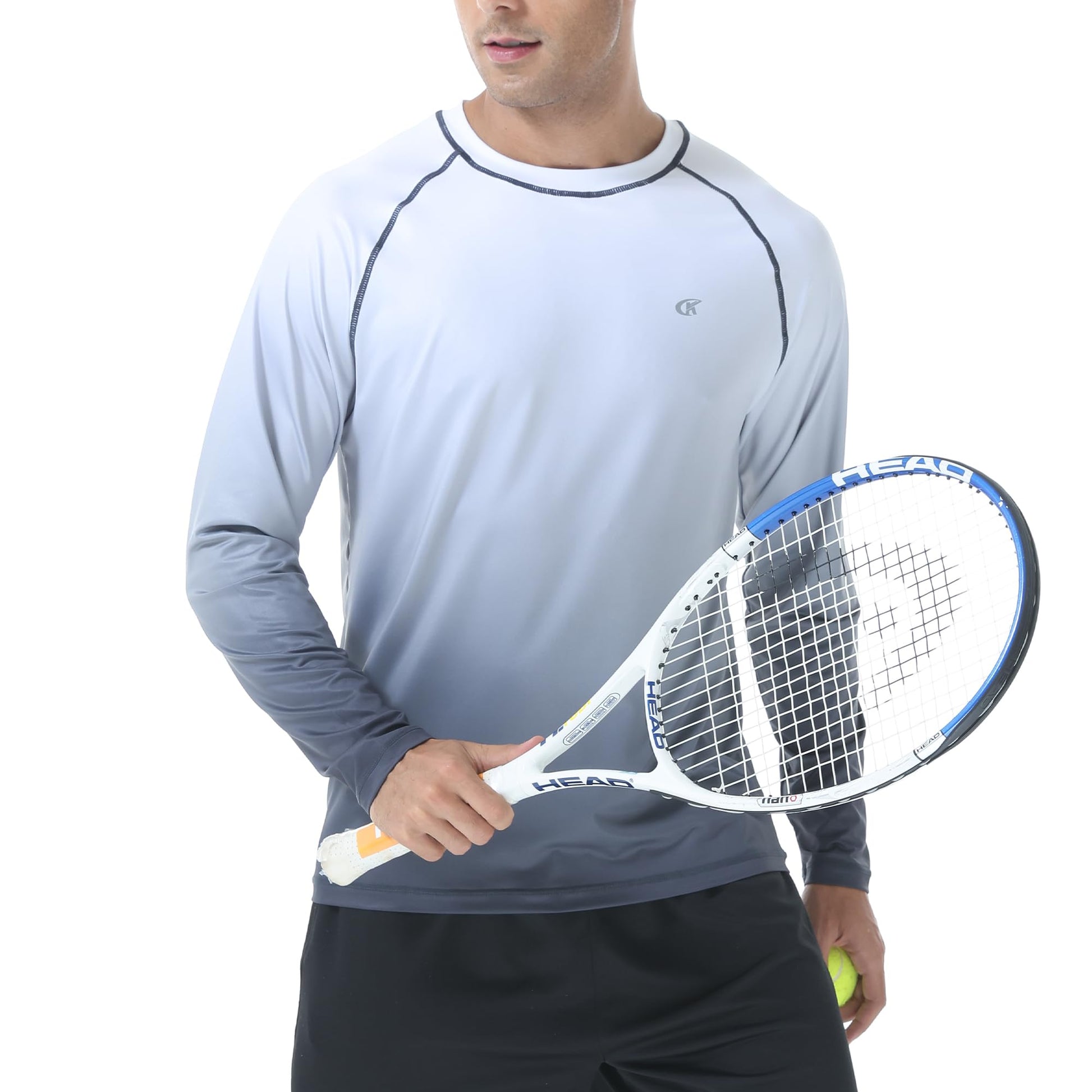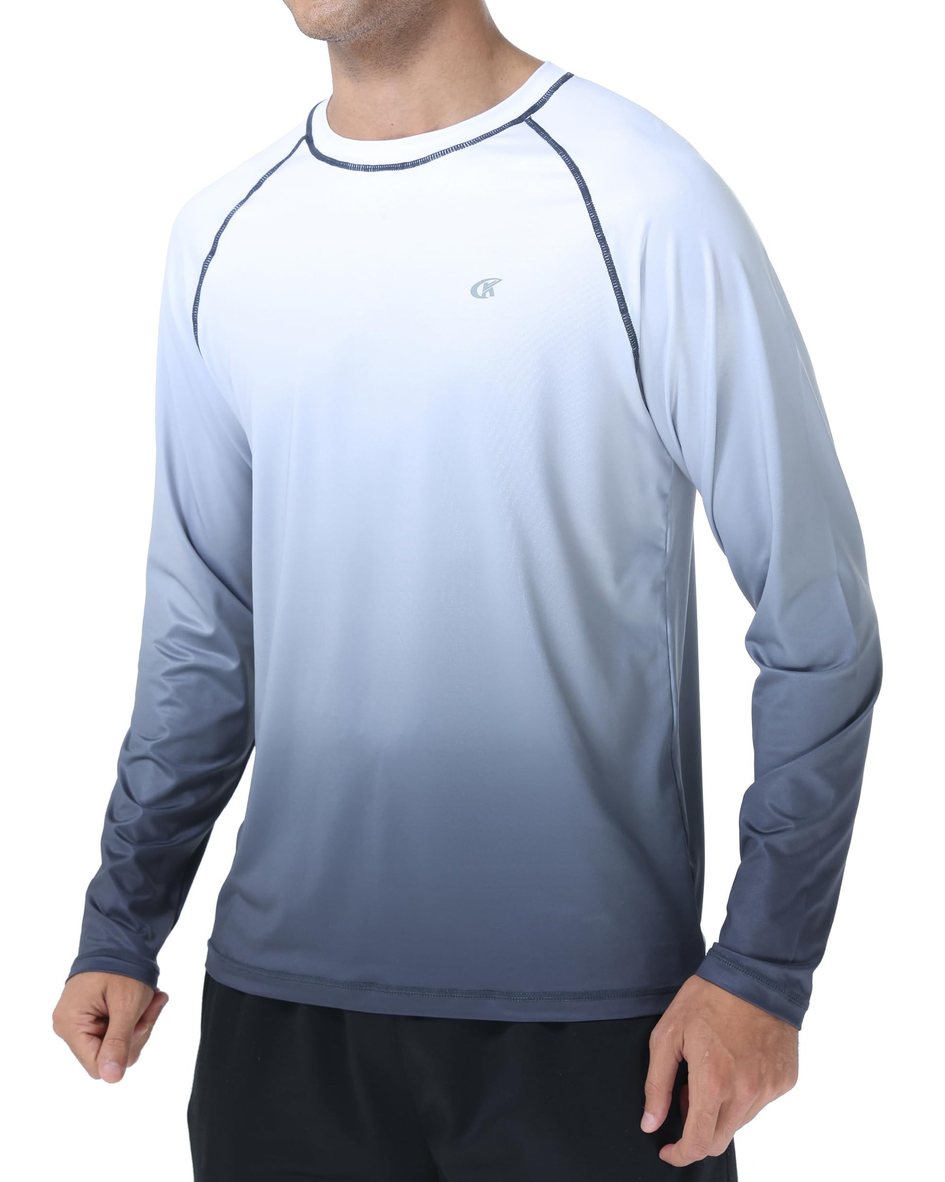 Satankud Men's Long Sleeve Swim Shirts Rashguard UPF 50+ UV Sun Protection Shirt Athletic Workout Running Hiking T-Shirt Swimwear (White Gradient Grey,X-Large)