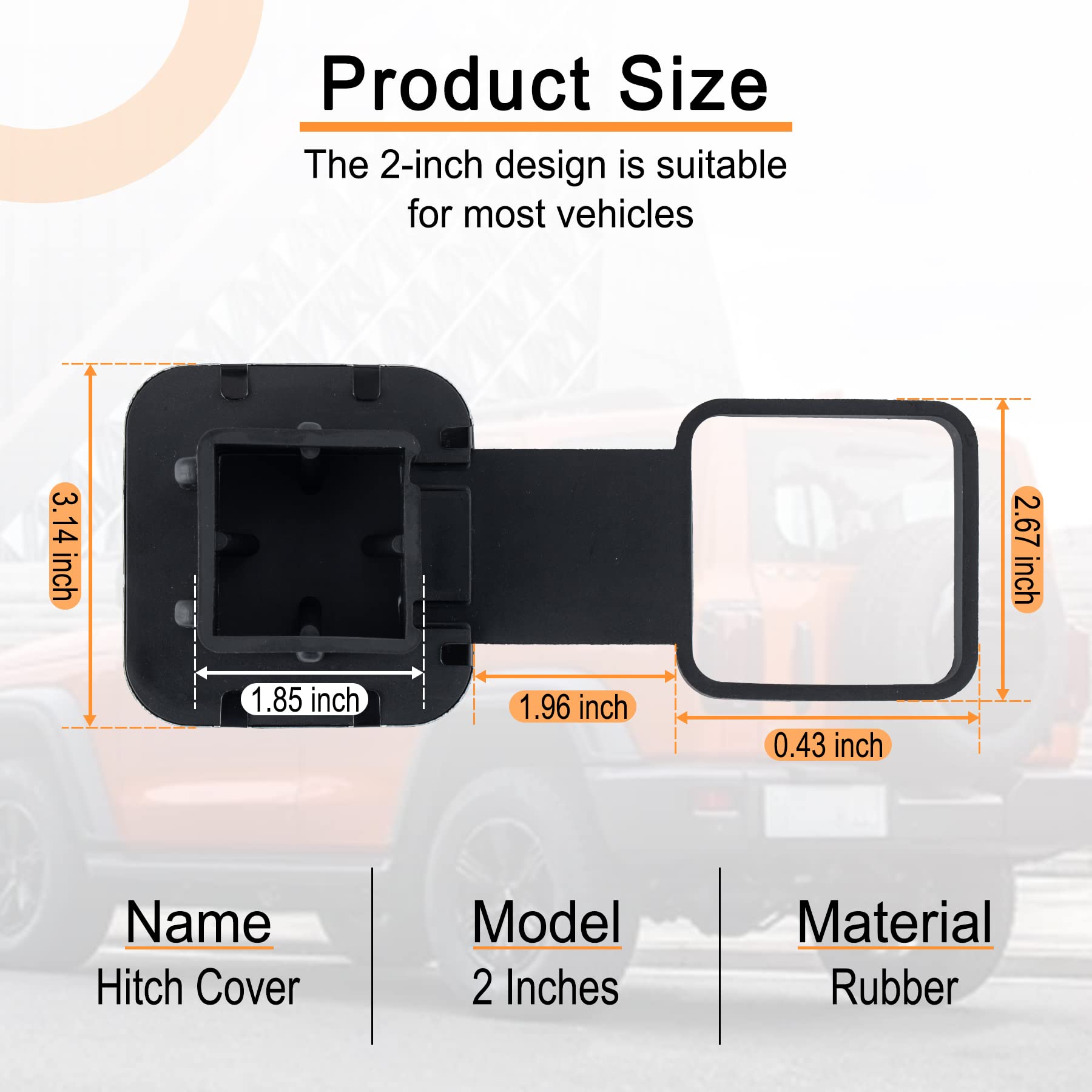 • Utility: A well fitting receiver tube cover 2 inch keeps mud, dirt, dust, rain, snow, ice and small animals out off the tube and prevent receiver tubes from rusting.