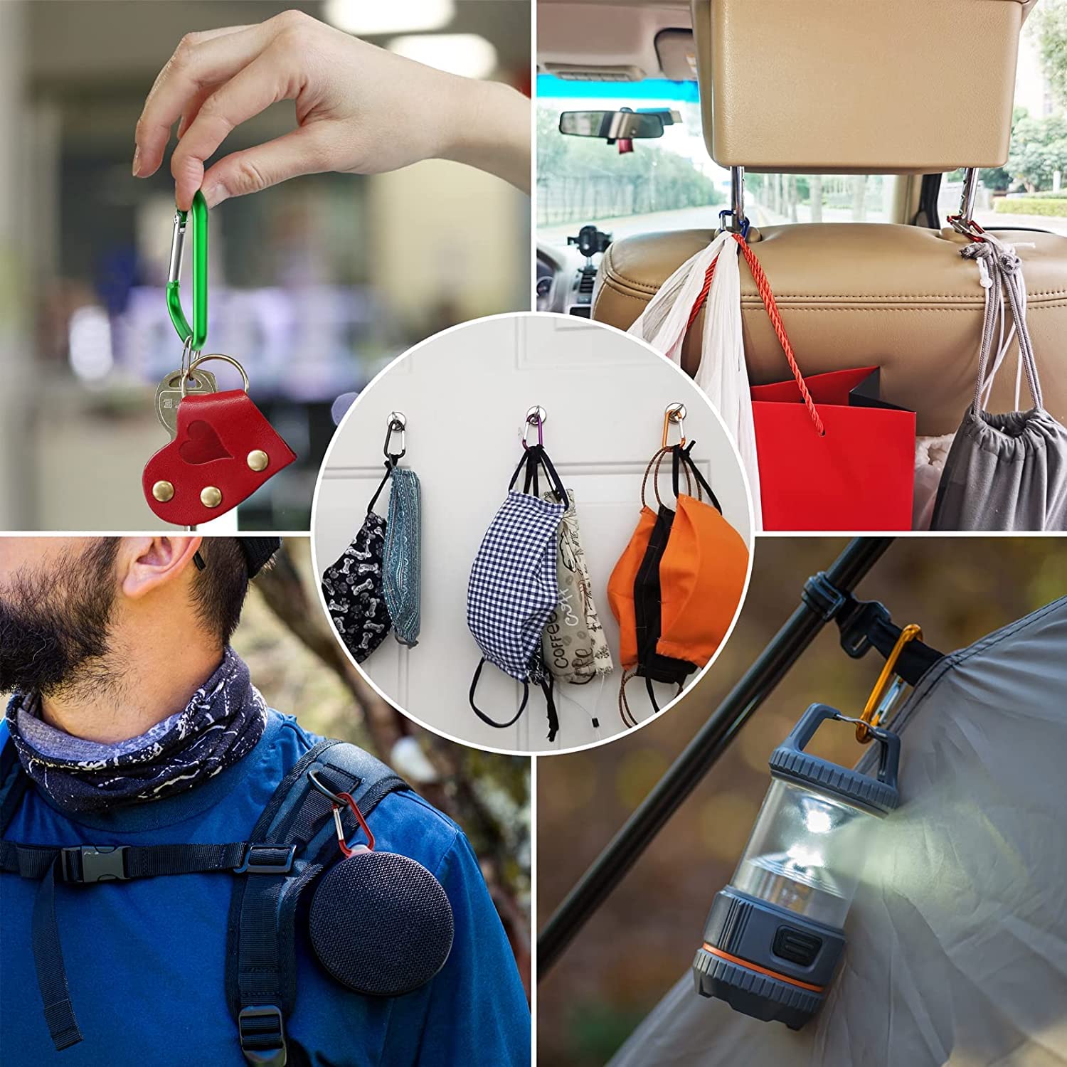 • ✔【Design】- Multicolor Caribeener Clips with Silver Steel Rings. Spring-Loaded Closing Gate makes Carabiner Keychain smoothly to open and close. Coloring through an oxidation process, which makes it very difficult to fade/rust, except scratching