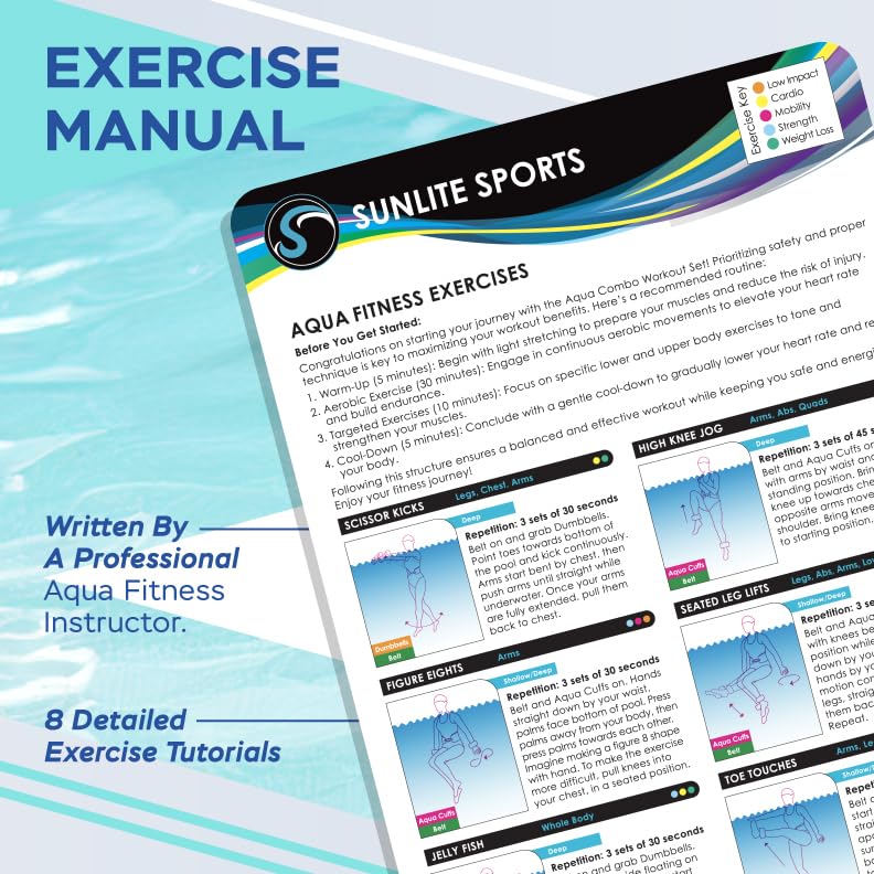 Sunlite Sports Water Workout Combo Set, Aqua Dumbbells, Swim Belt and Aqua Cuffs, Water Weights for Pool Exercise, Water Aerobics Equipment, High-Density EVA Foam for Aqua Jogging and Therapy