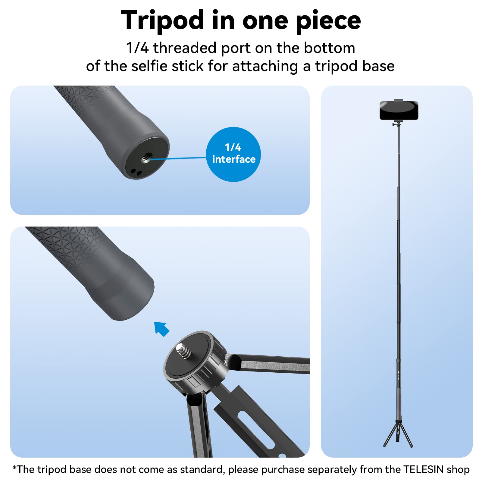 • 【Connectable with Tripod Stand】 The pole bottom built with a standard 1/4 tripod screw which allows you connect this selfie stick with any tripod to free your hand while shooting vlogging or taking a video. Note: the package does NOT included tripod.