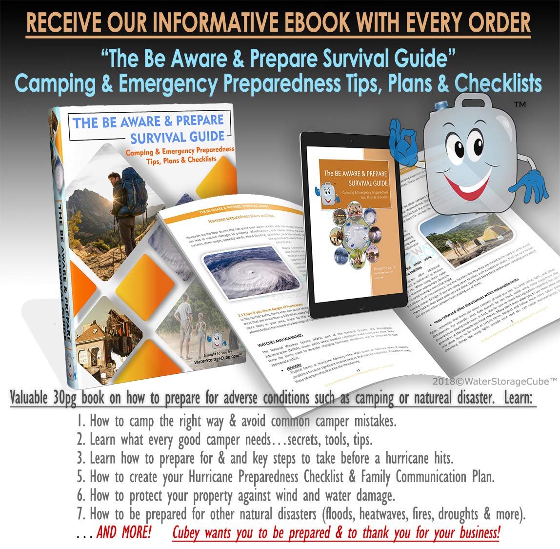 Made with high quality materials to above average standards. Our water tank unit is highly reliable for outdoor use. It's perfect for car emergencies & natural disasters like hurricane, tornado, earthquake & floods. Free download of our “Camping & Emergency Preparedness Survival Guide” eBook. When not in use, dry completely, collapse, fold & store.