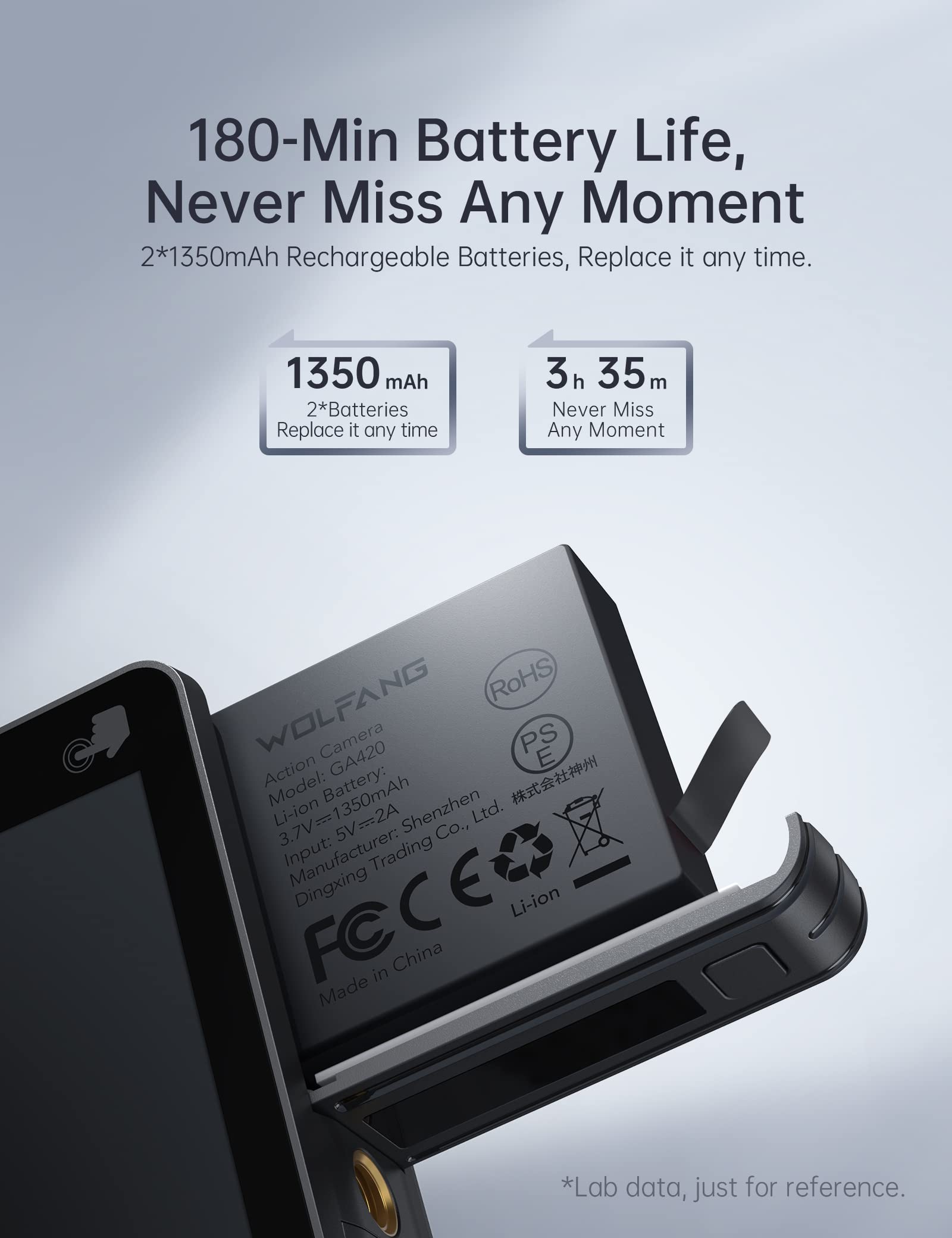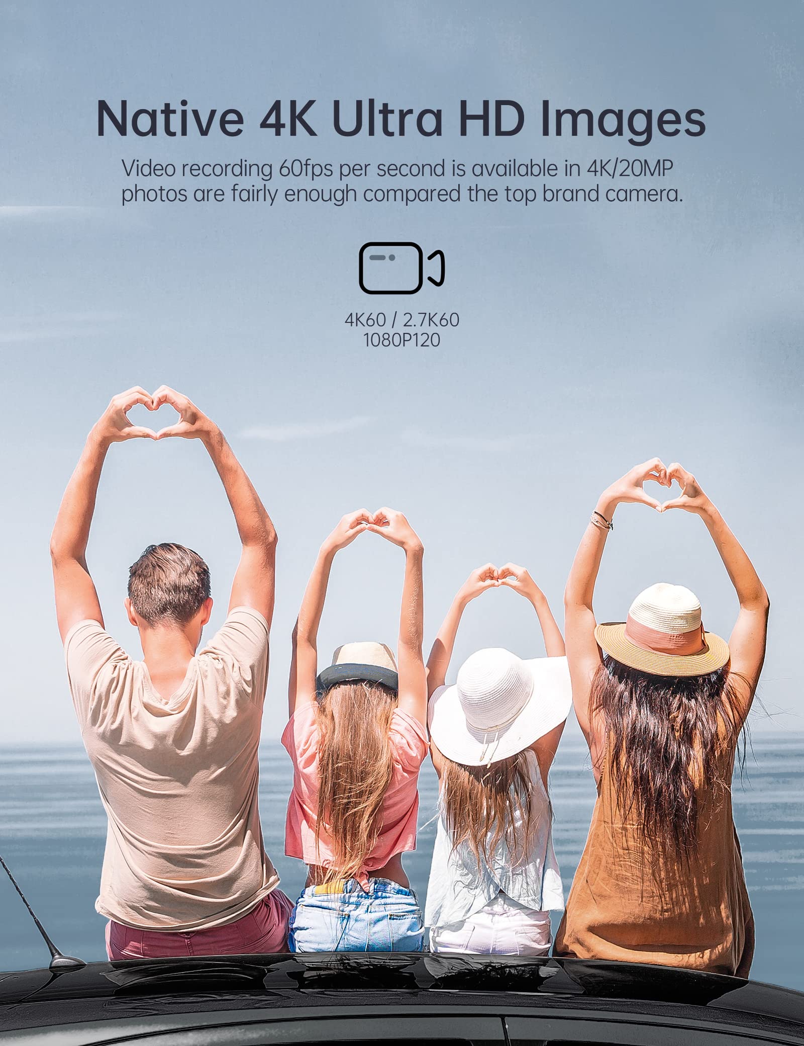 • 4K60FPS 24MP & 170° Adjustable Wide Angle: The GA420 sports camera has built-in video resolution up to 4K60FPS and photo resolution up to 24MP. The 170° adjustable wide-angle can freely expand or narrow the field of view.