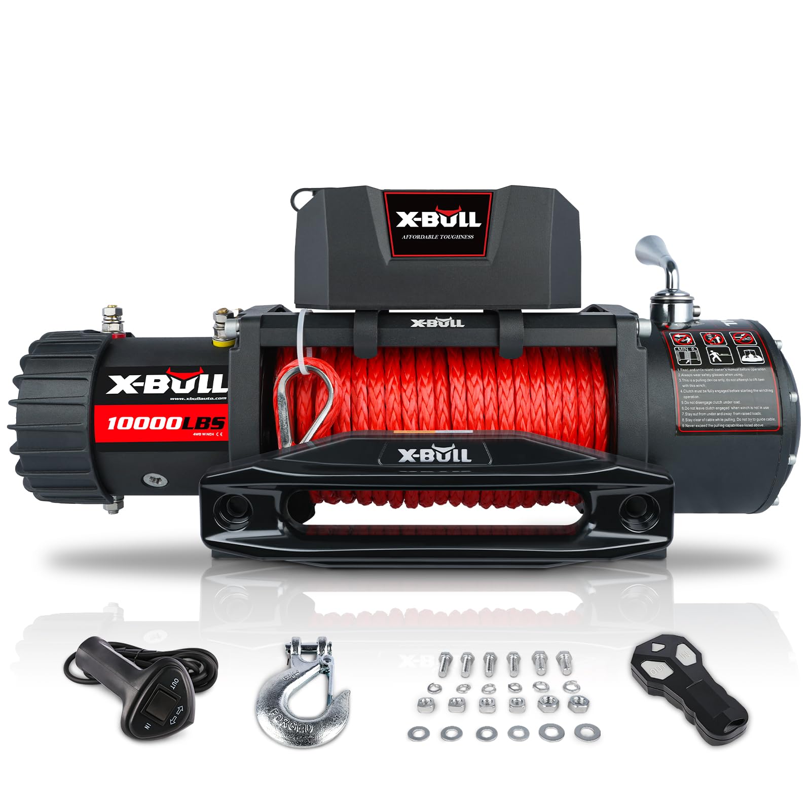 X-BULL Winch 10000 lb. Load Capacity Electric Winch Kit 12V Synthetic Rope,Waterproof Electric Winch with Hawse Fairlead, with Wireless Handheld Remote and Corded Control Recovery