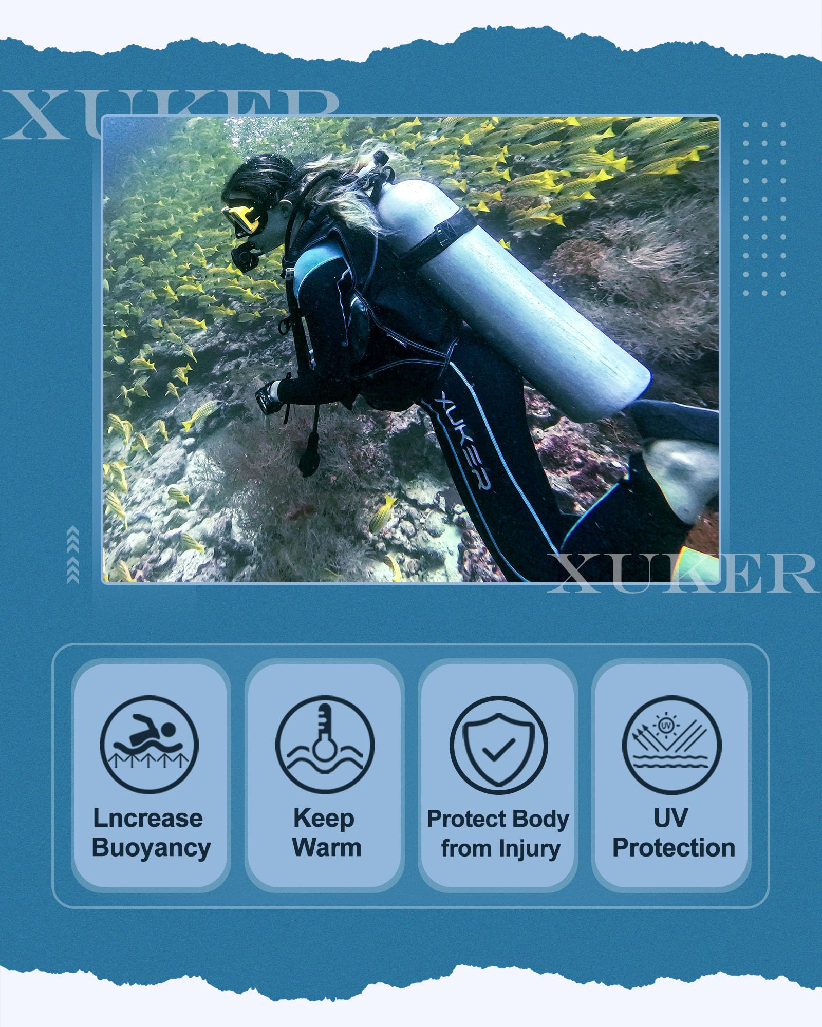 • 【Ideal for Various Sports】XUKER Neoprene Wetsuits Fit Multiple Water Sports - lake pool ocean swimming, snorkeling, jetskiing, kayaking, paddling, boarding, diving, surfing. Let's redefine the way to experience water sports~