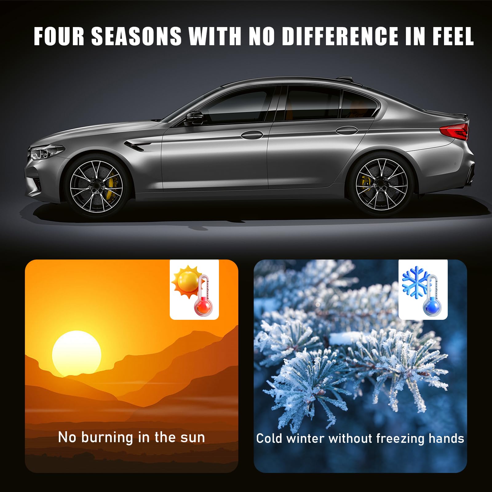 • 【Widely Application】: This steering wheel fits steering wheels up to 15 inches (38 cm) in diameter. Suitable for most steering wheels on the market. And it is suitable for both men and women, the comfortable and safe design can be used all year round, you don't have to replace it according to the season. If you are not sure if your steering wheel is suitable, please contact us.